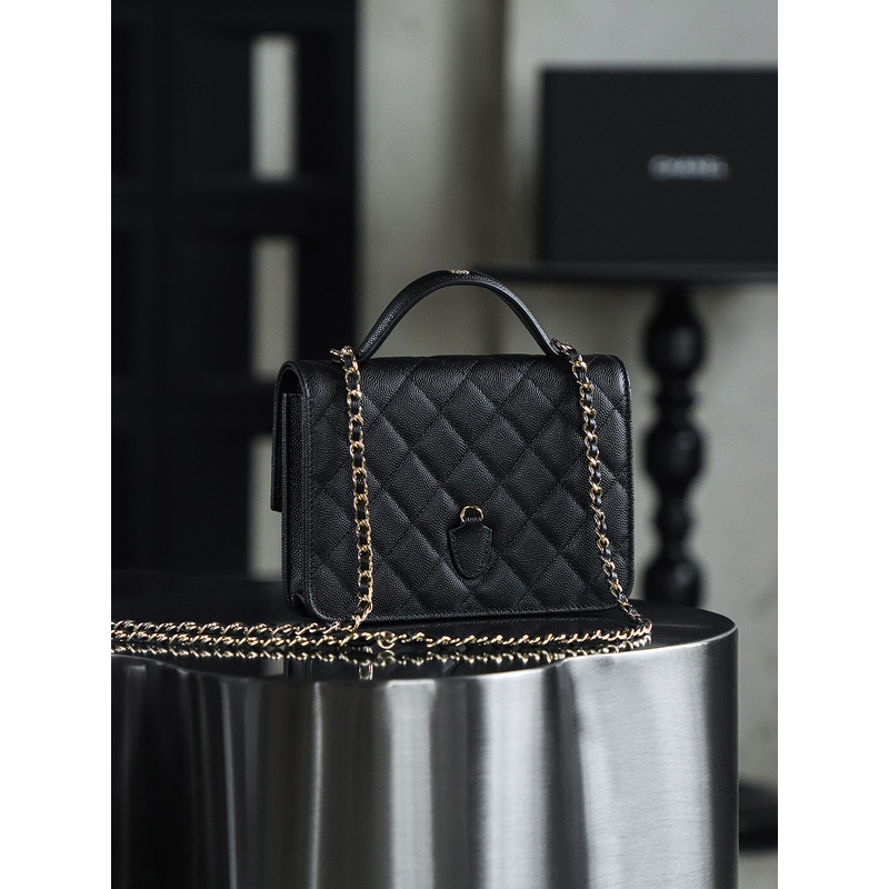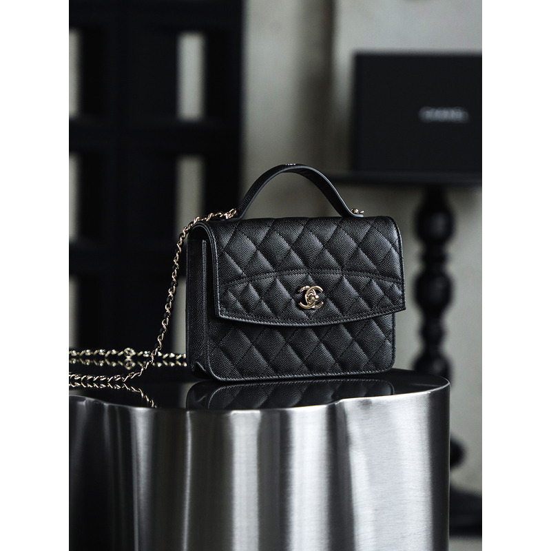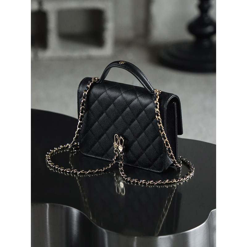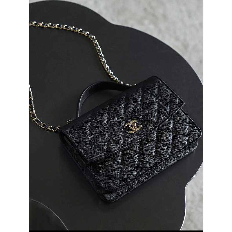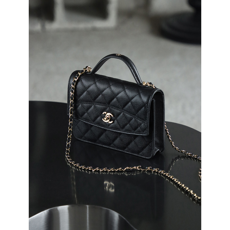 Chanel Flap Bag With Top Handle Lambskin & Gold-tone Metal Black