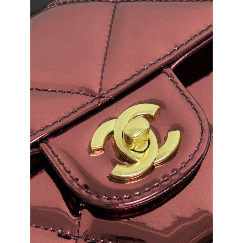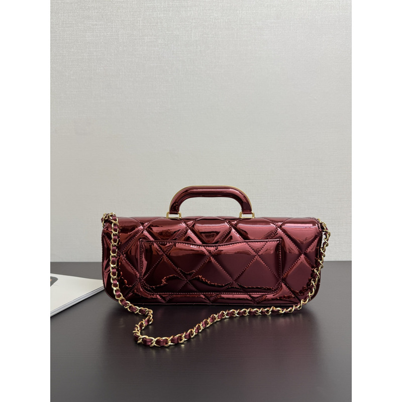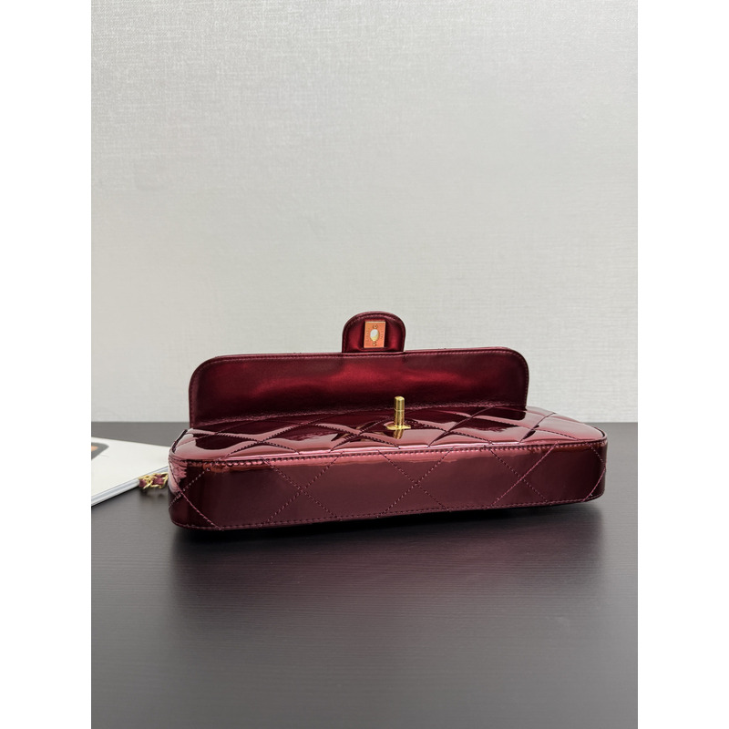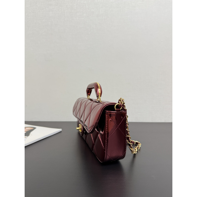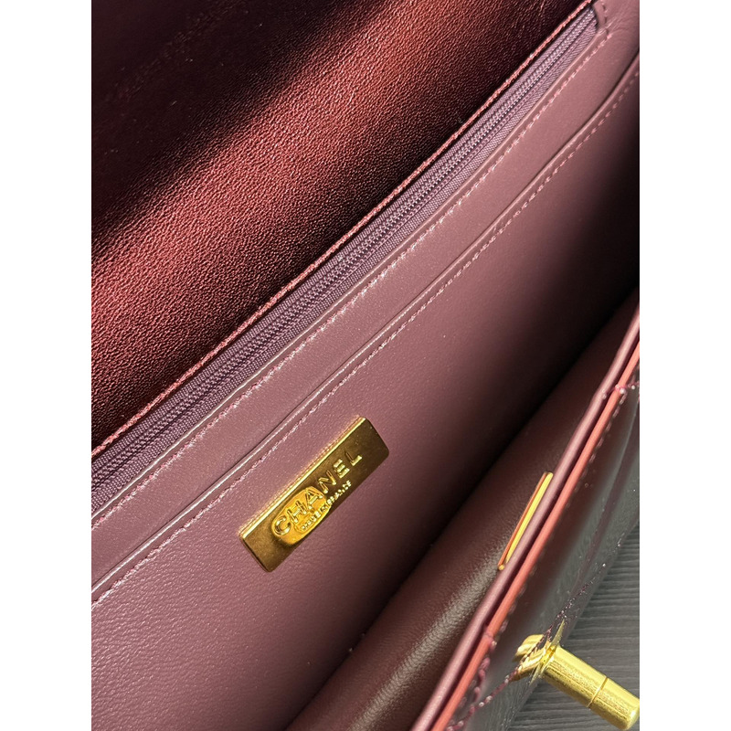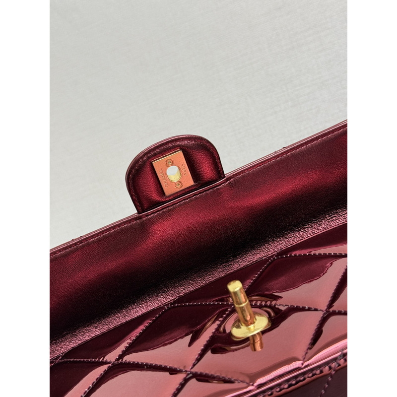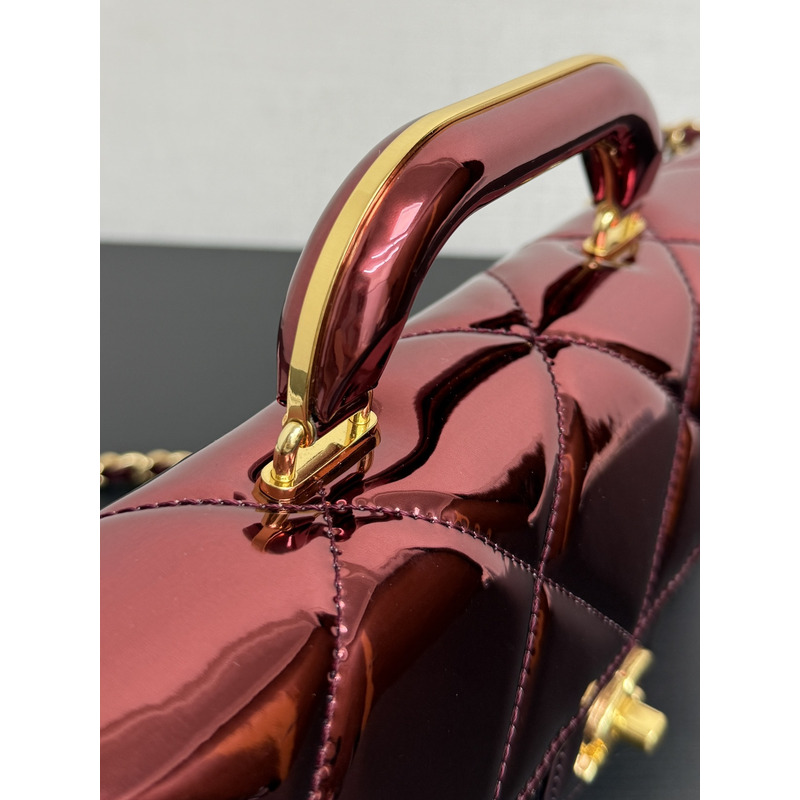 Chanel Large Flap Bag With Top Handle Patent Calfskin In Red