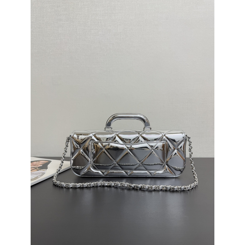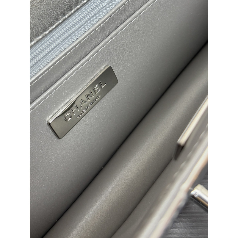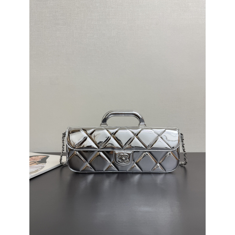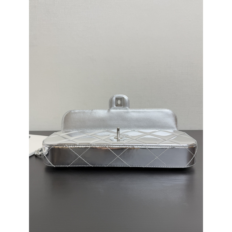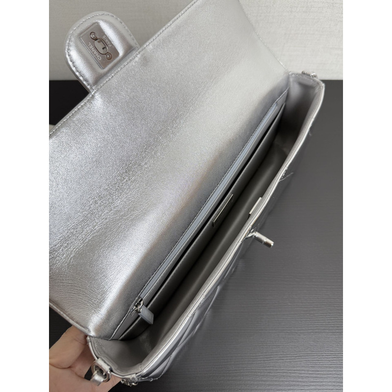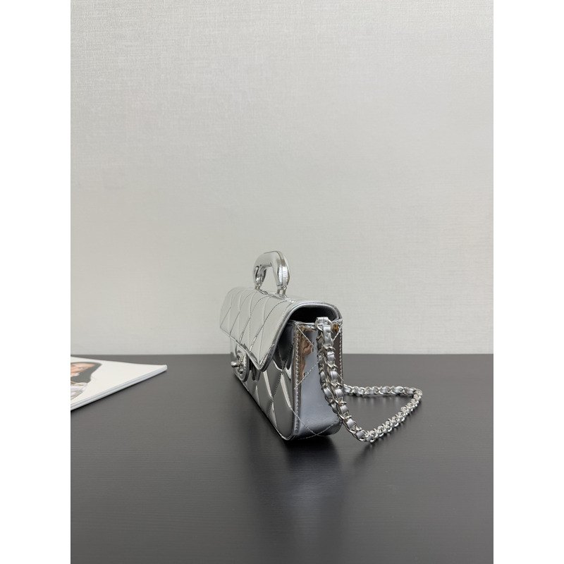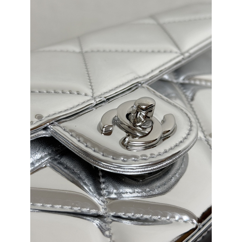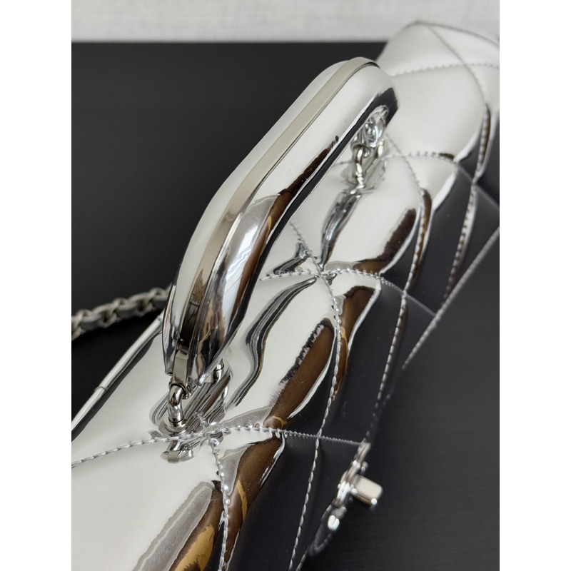 Chanel Large Flap Bag With Top Handle Patent Calfskin In Silver