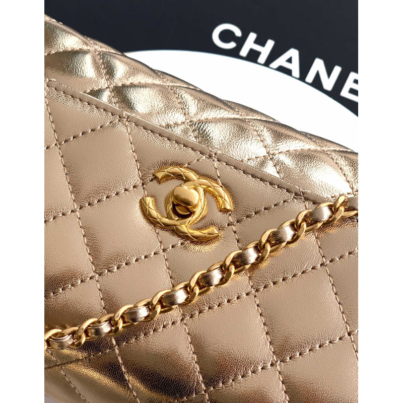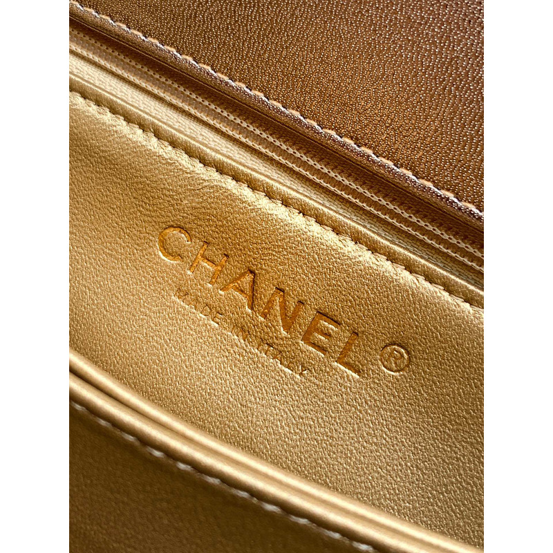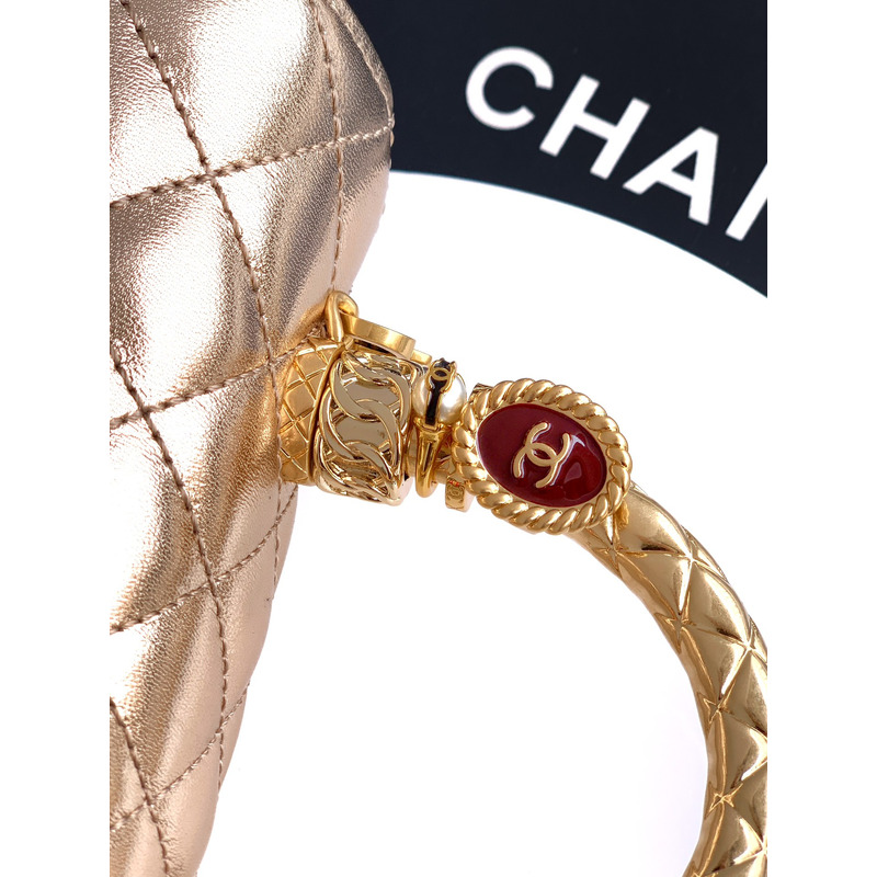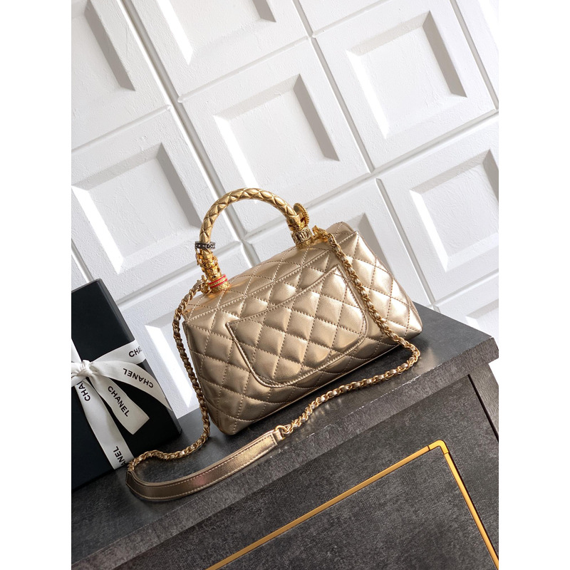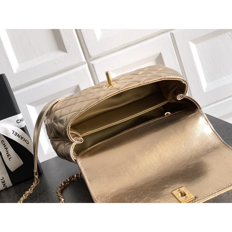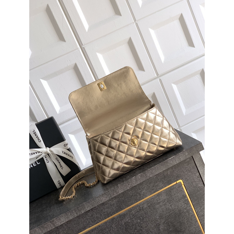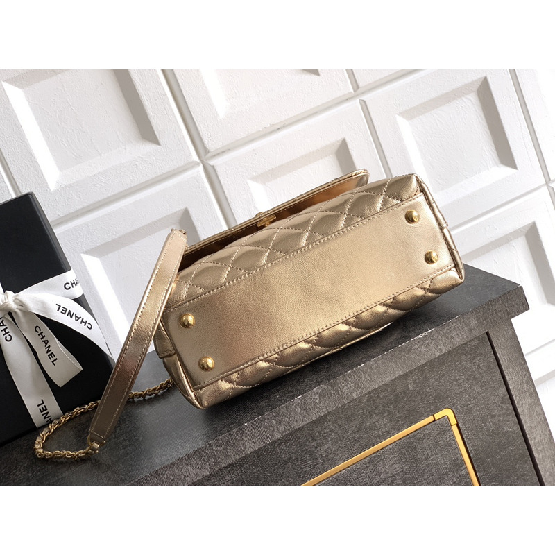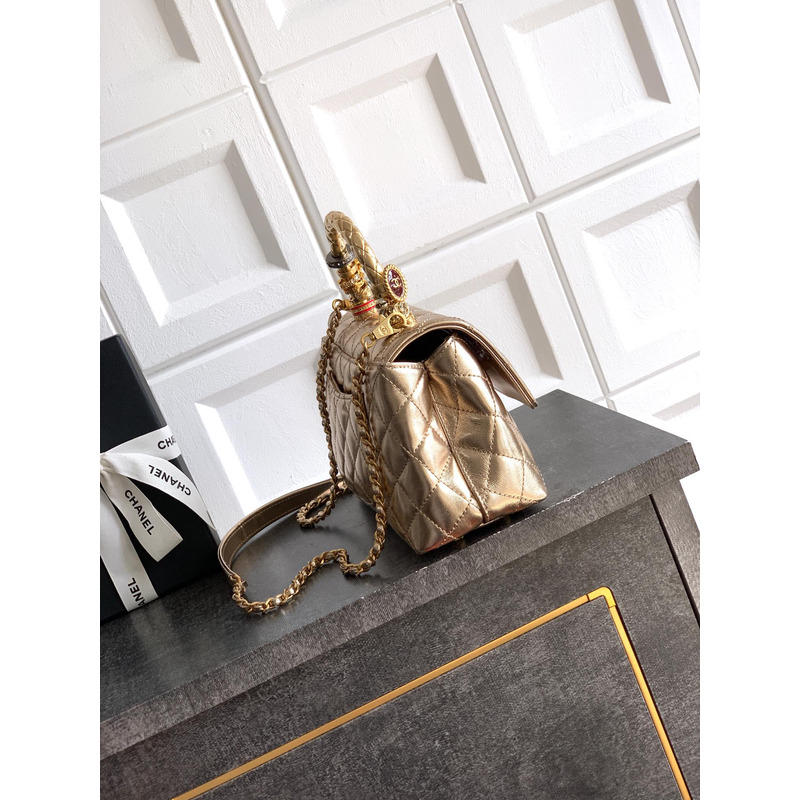 Chanel Medium Quilted Metallic Top Handle Flap Bag With Embellished Handle In Metallic Gold