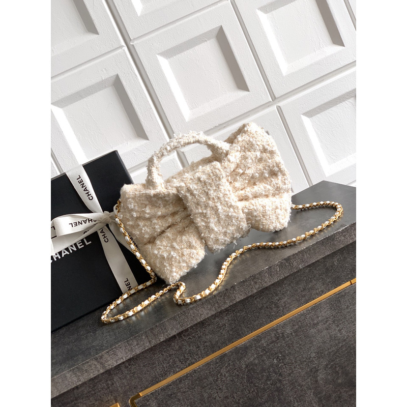 Chanel Mini Flap Bag With Top Handle & Oversized Bow In Cream White