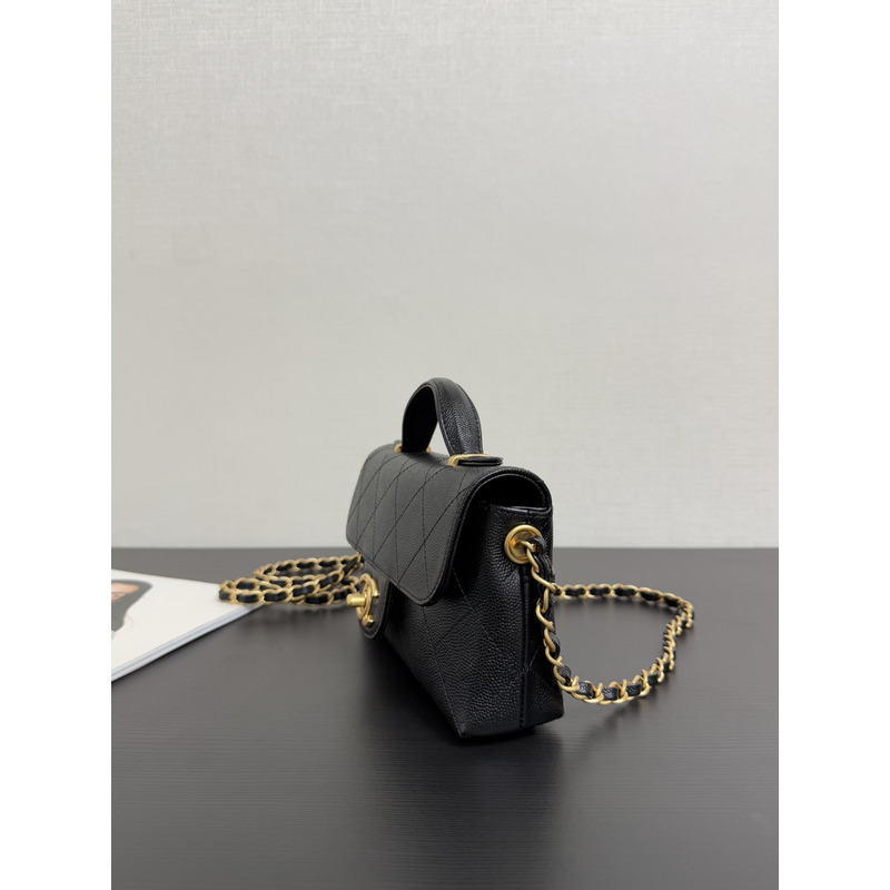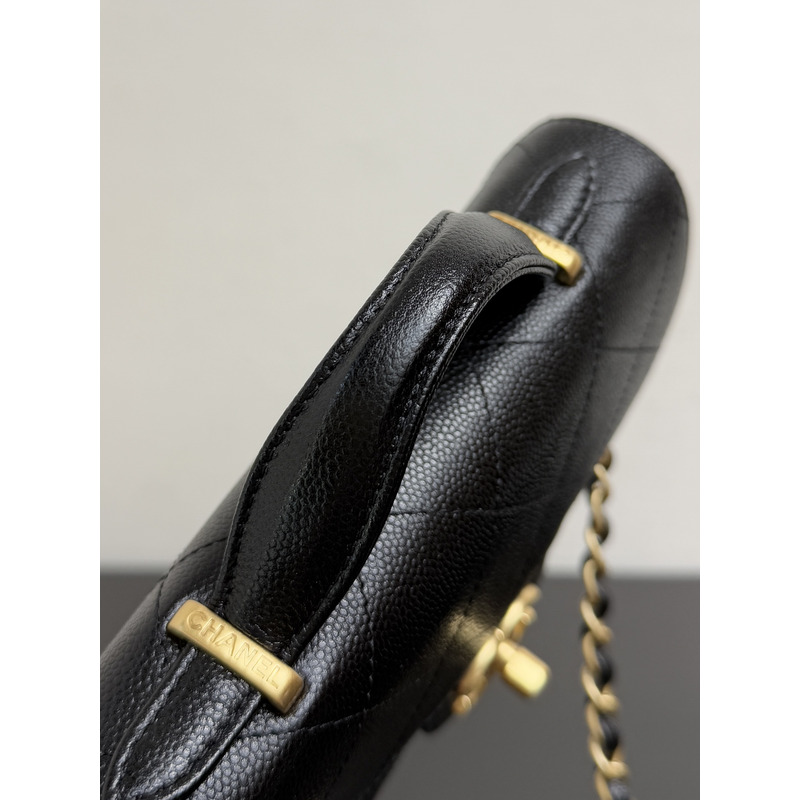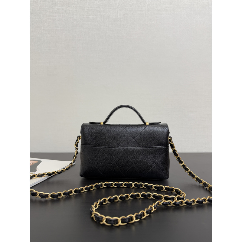 Chanel Quilted Calfskin Top-Handle Bag: Black, Gold-Tone Chain