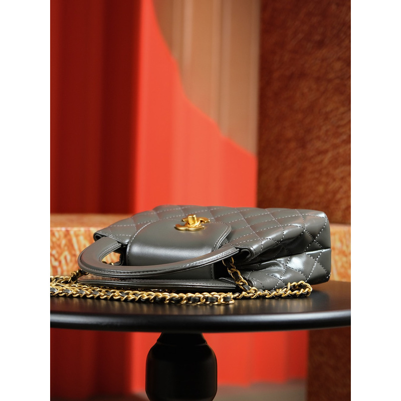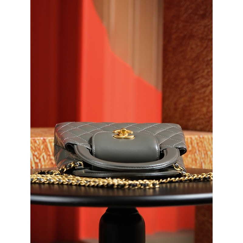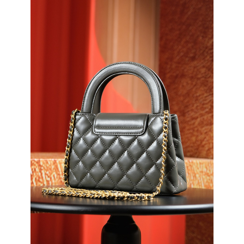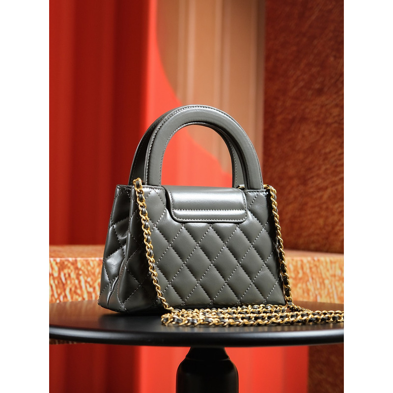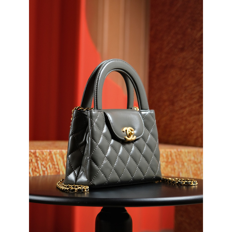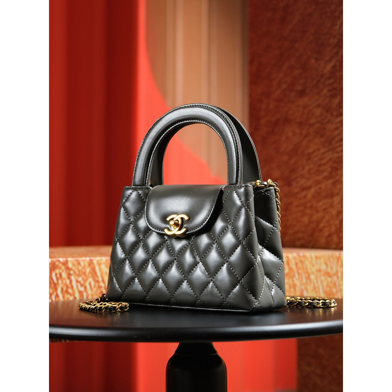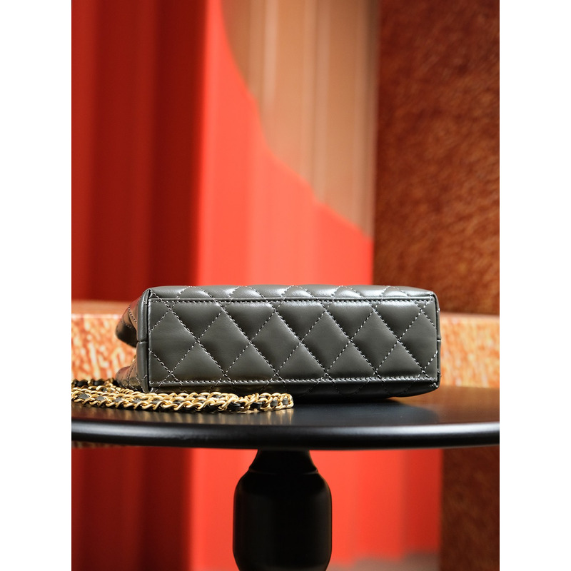 Chanel Quilted Kelly Flap Calfskin 24K Gold Bag Dark Grey