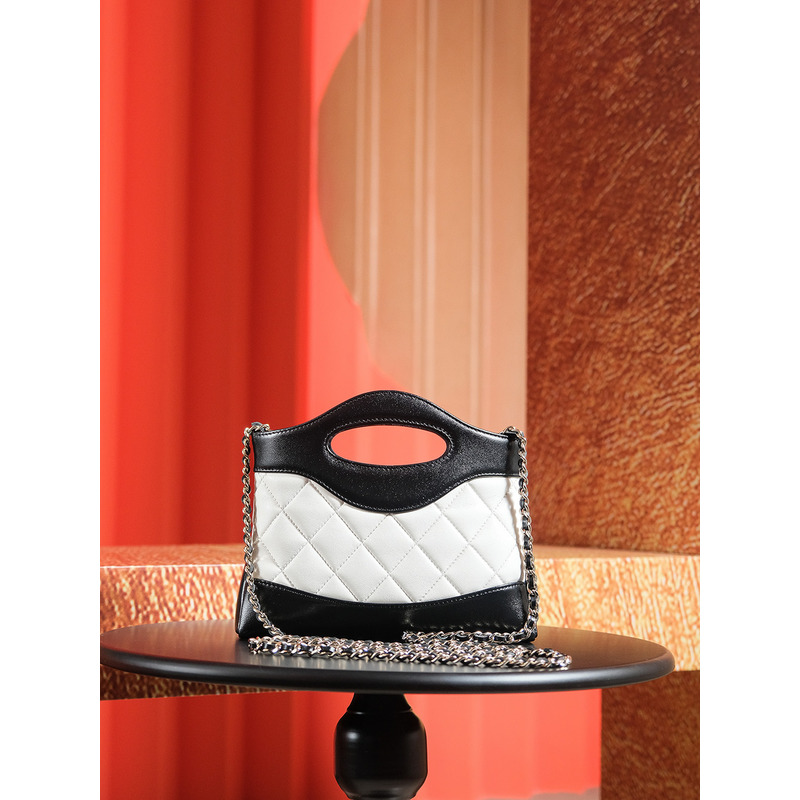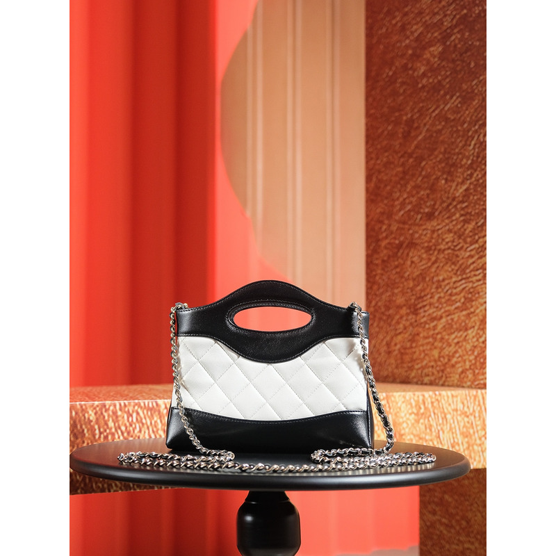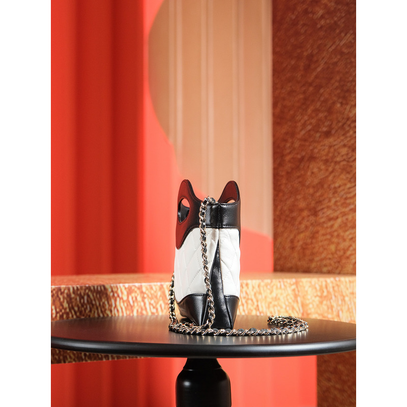 Chanel Quilted Leather & 24K Gold Mental Chain - Strap Bag In Black & White
