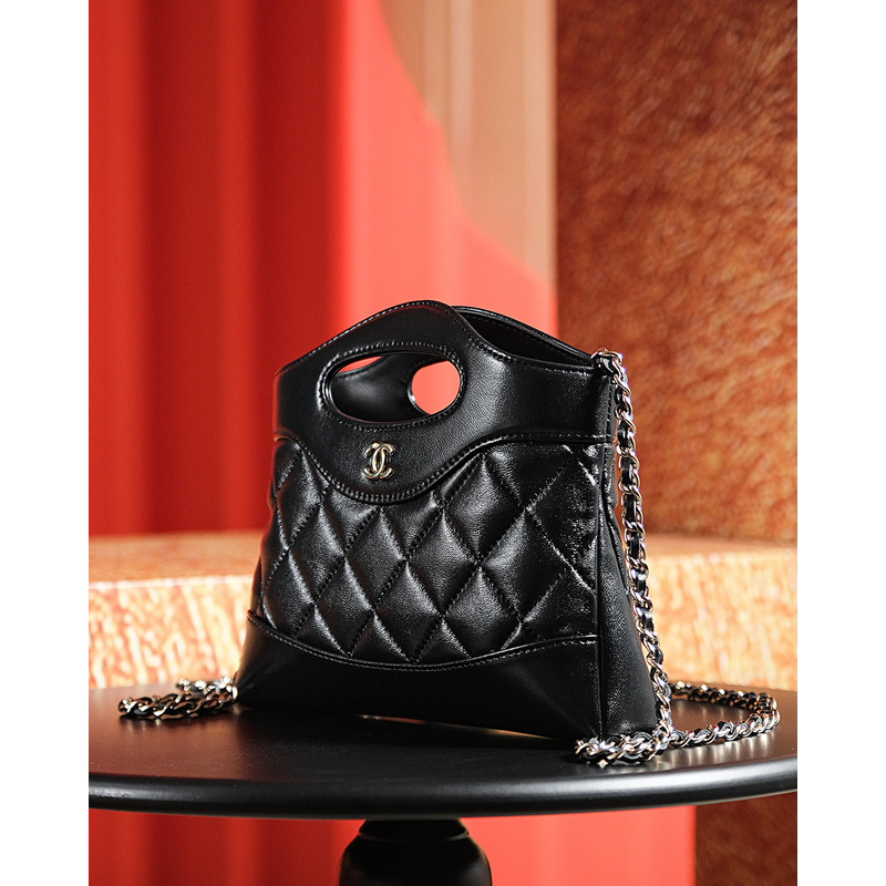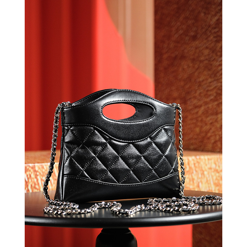 Chanel Quilted Leather & 24K Retro Silver Mental Chain - Strap Bag In Black