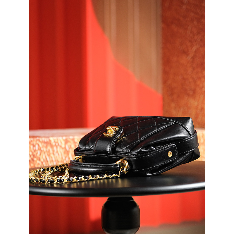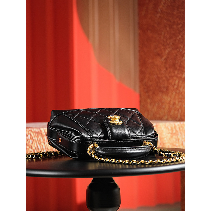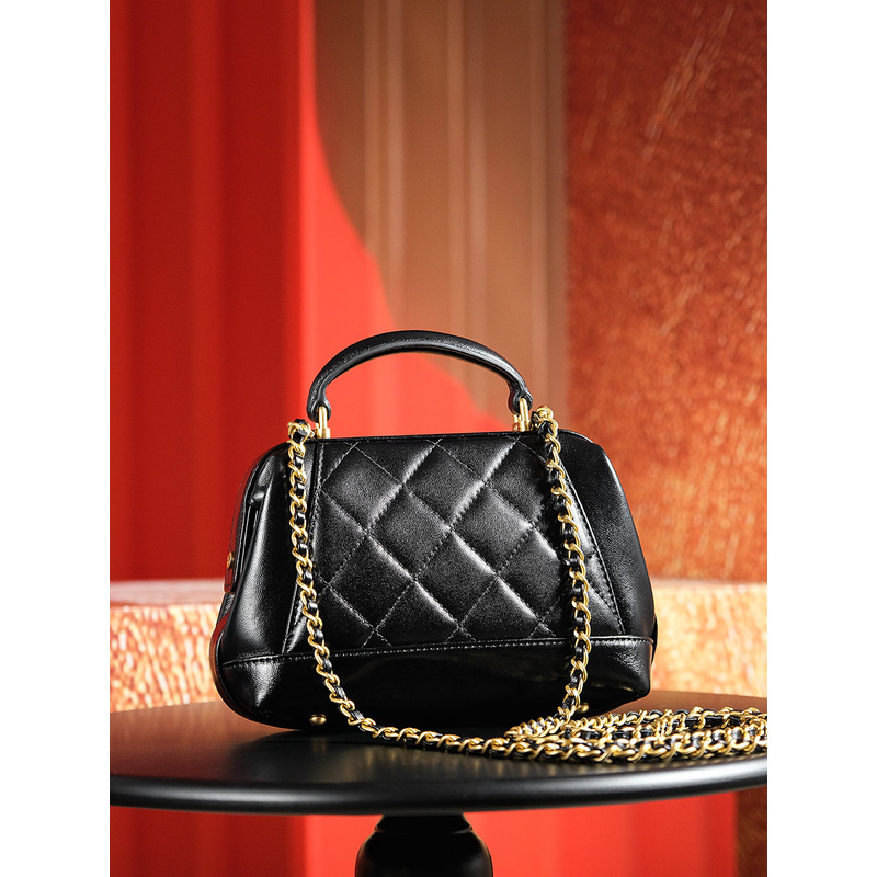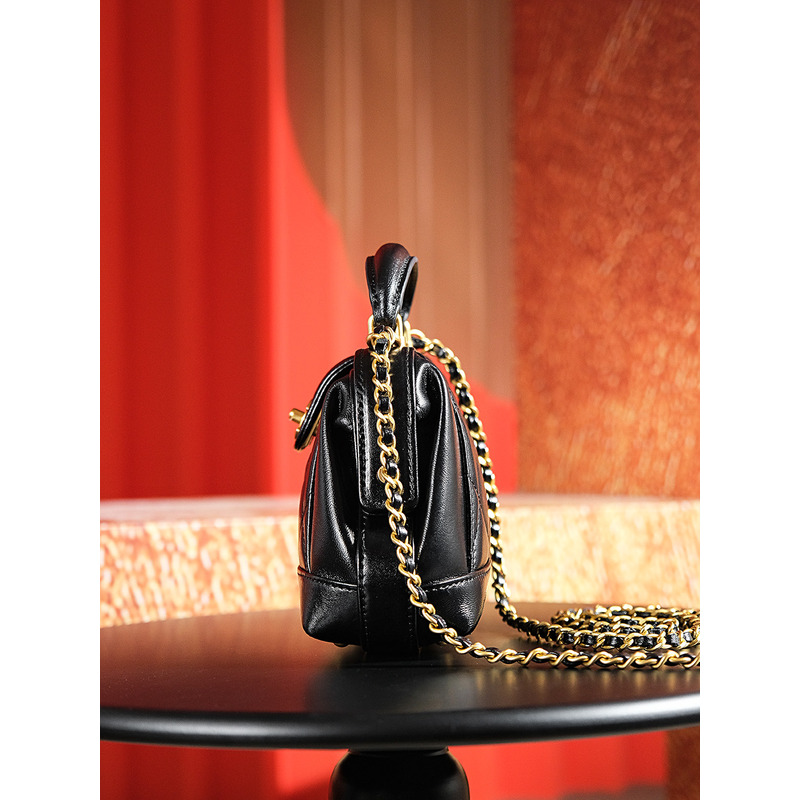 Chanel Shiny Lambskin Quilted & 24K Gold Mental Cocodoc Top Handle Bag Black