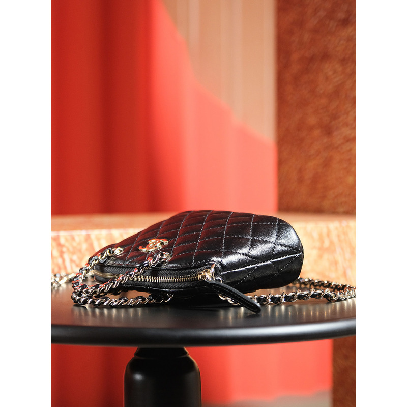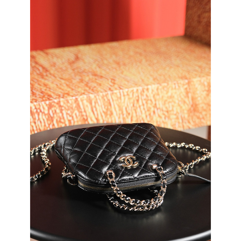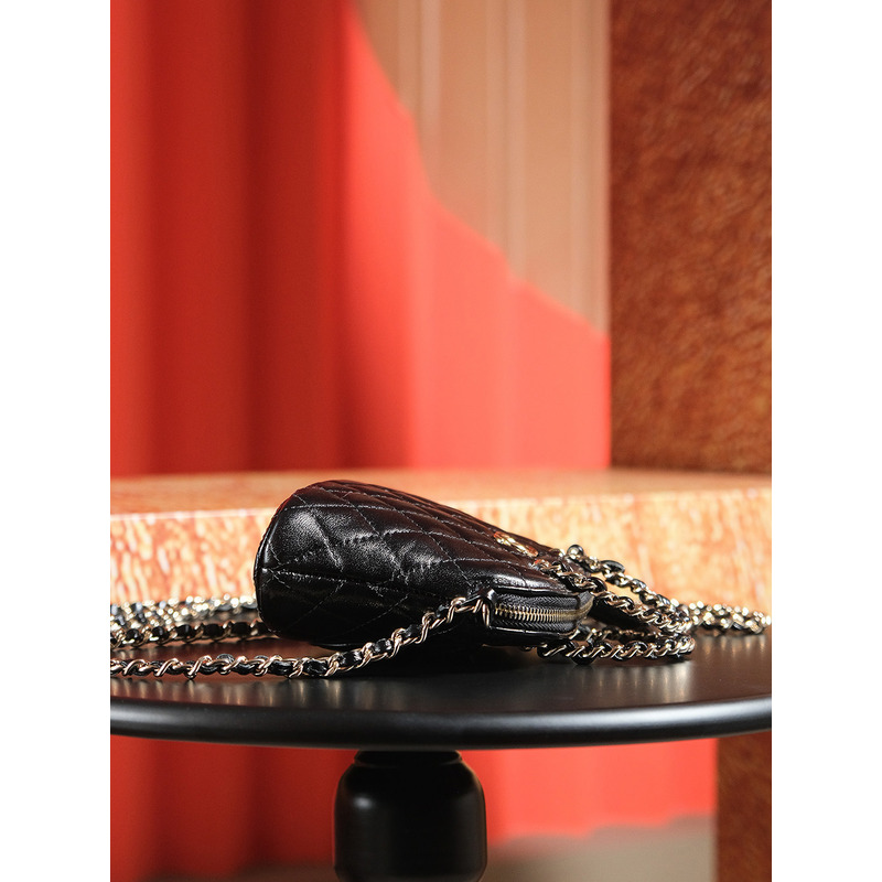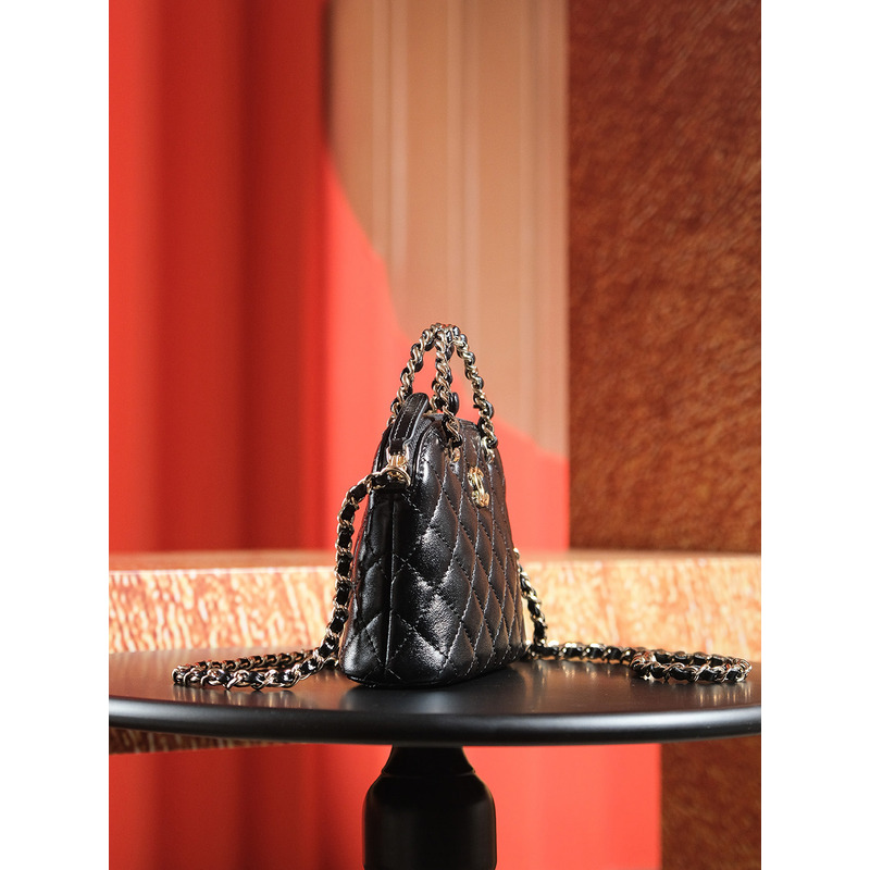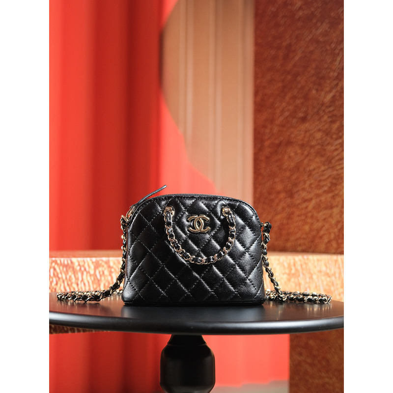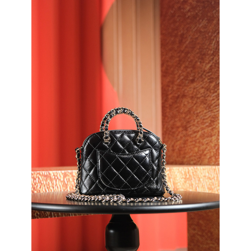 Chanel Small Black Quilted Lambskin & 24K Silver Metal Dome - Shaped Chain - Handle Bag