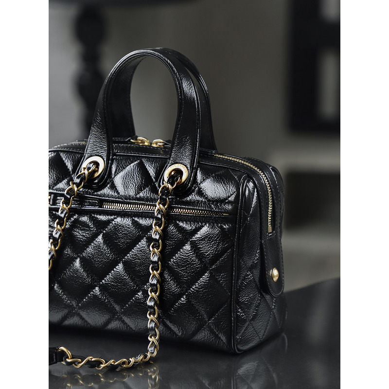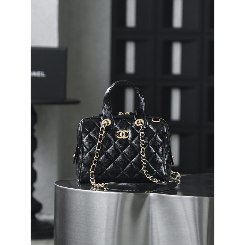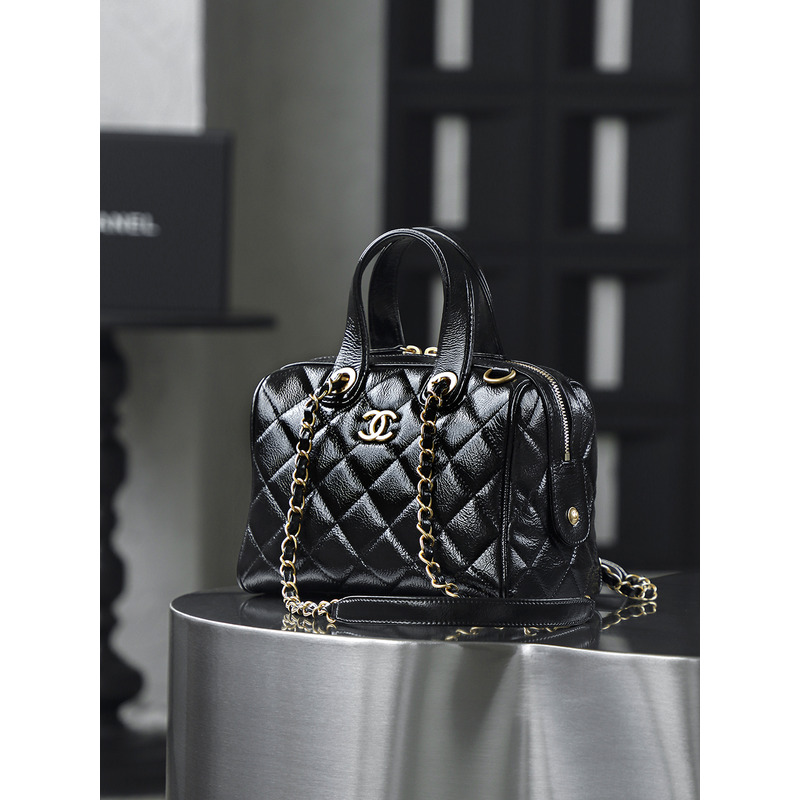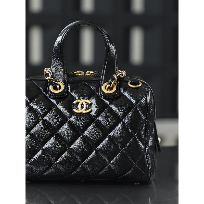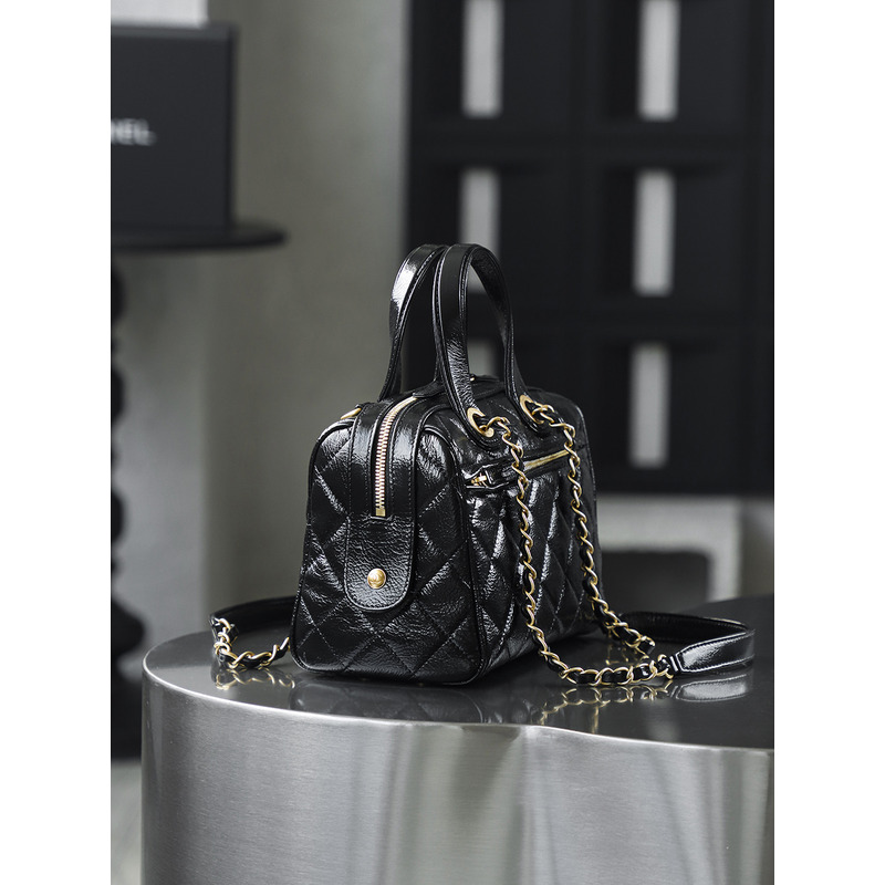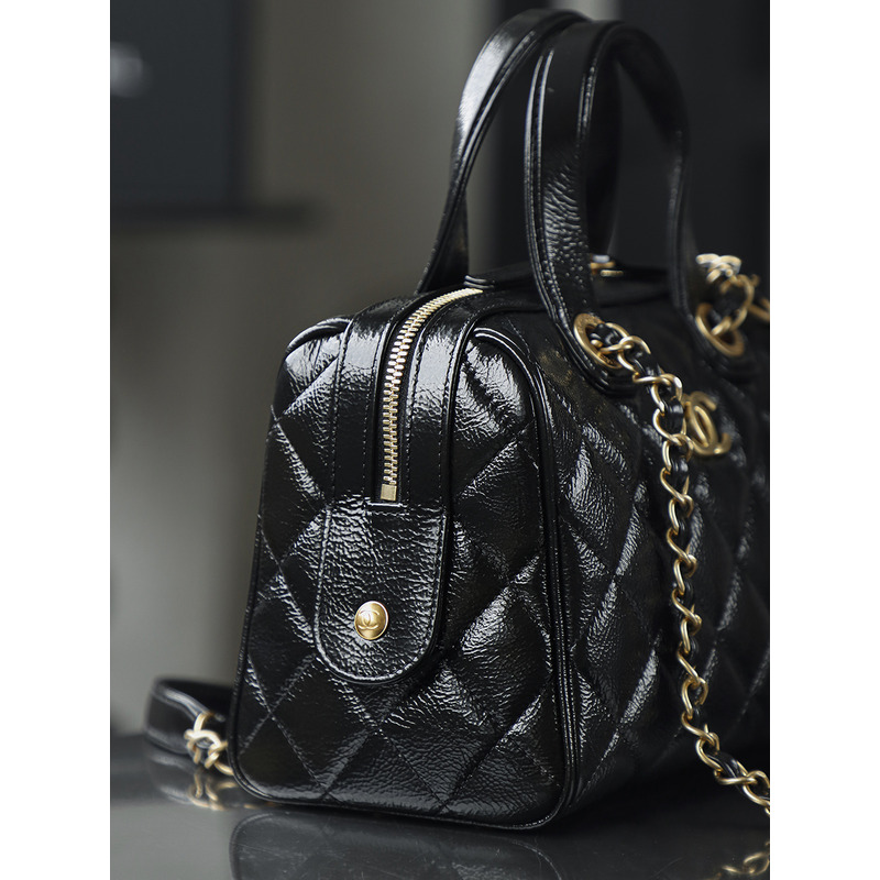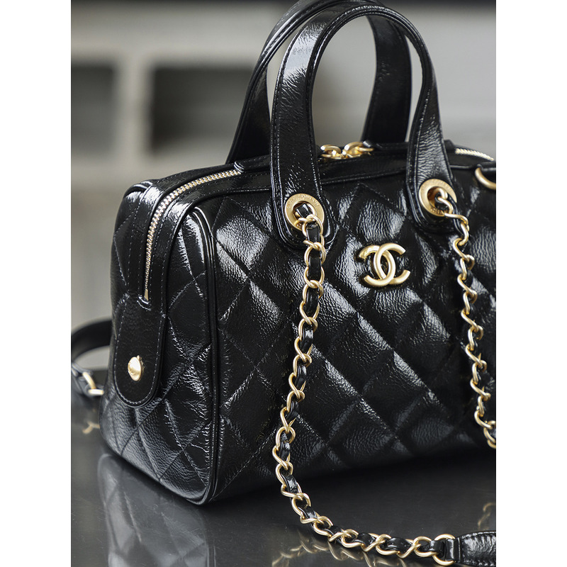 Chanel Small Bowling Bag Patent Crumpled Calfskin & Gold-tone