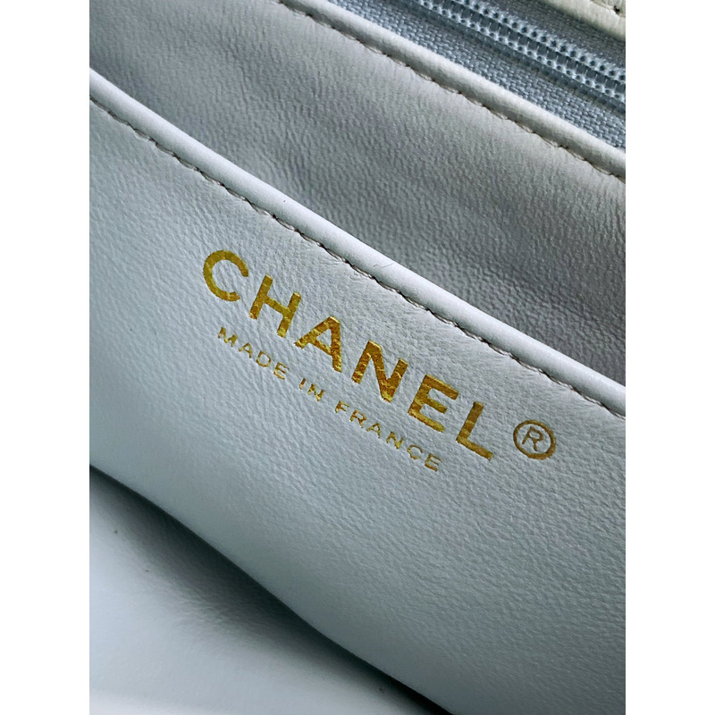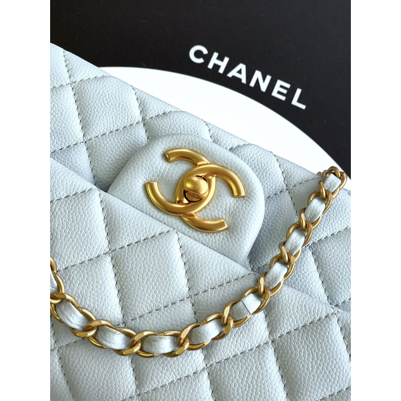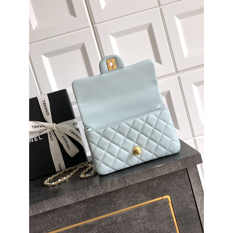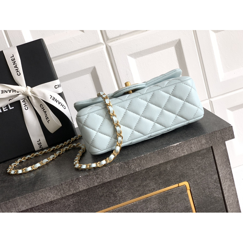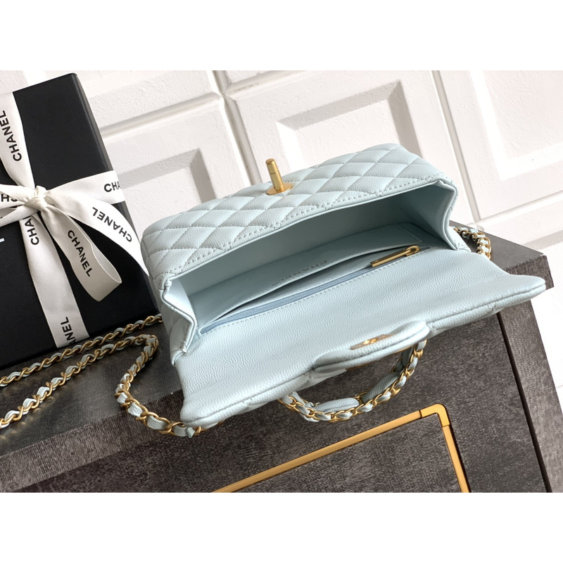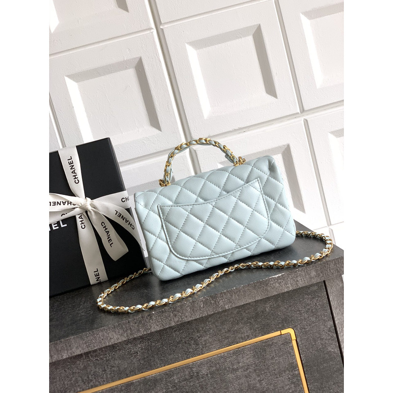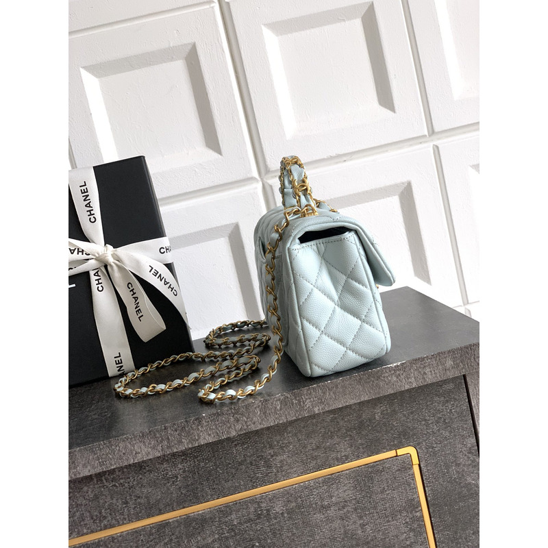 Chanel Small Classic Flap Bag With Top Handle Leather In Light Blue