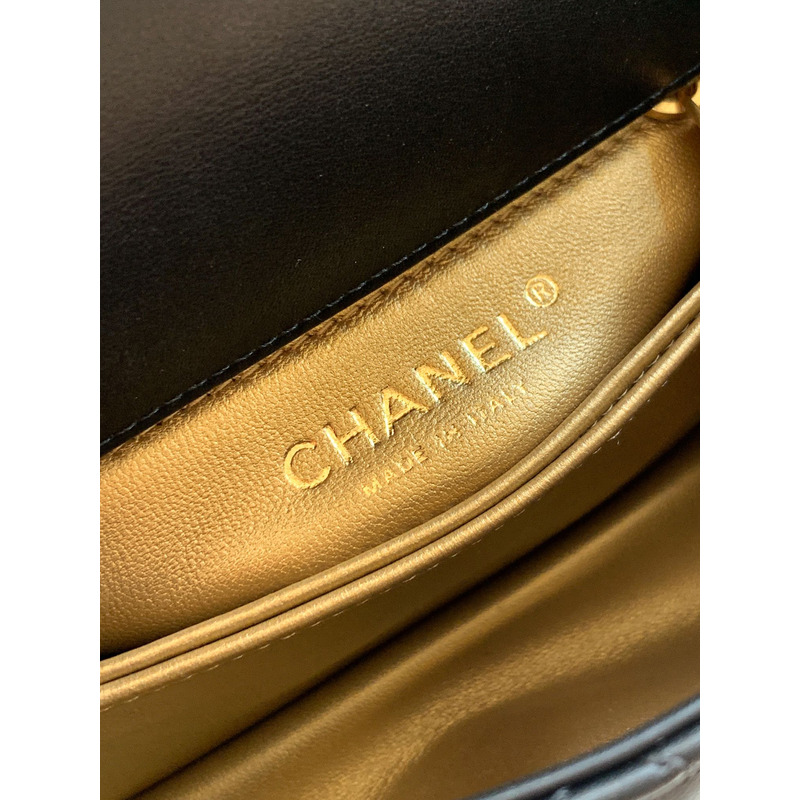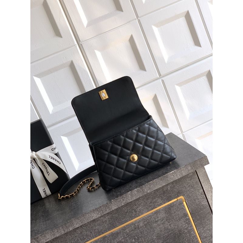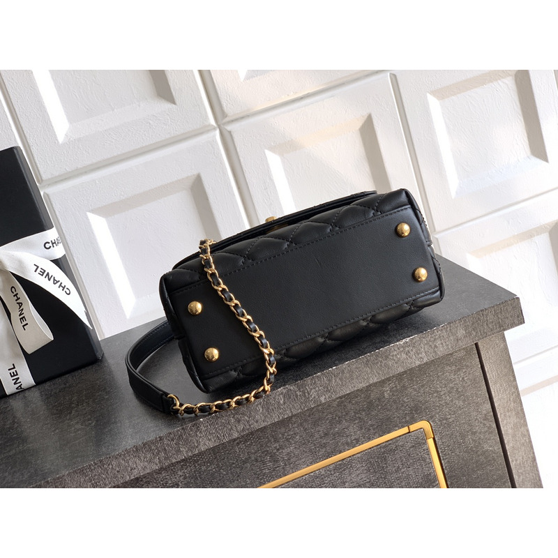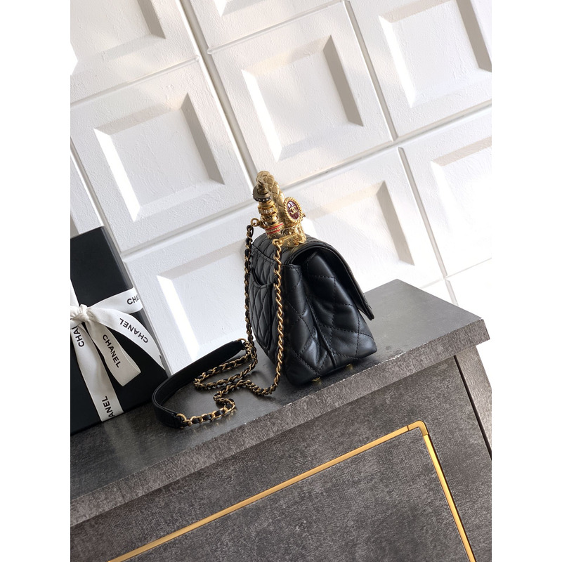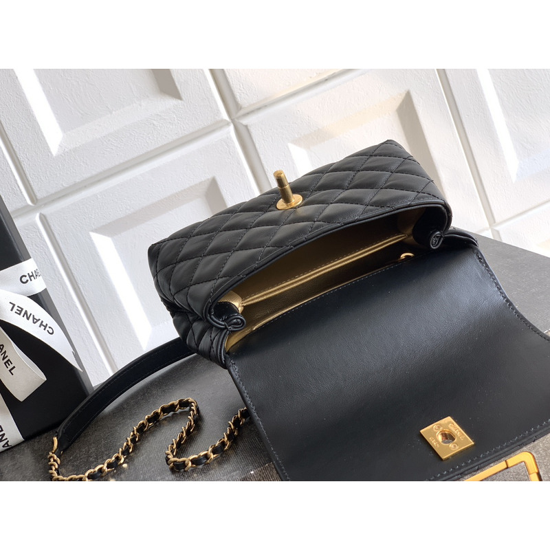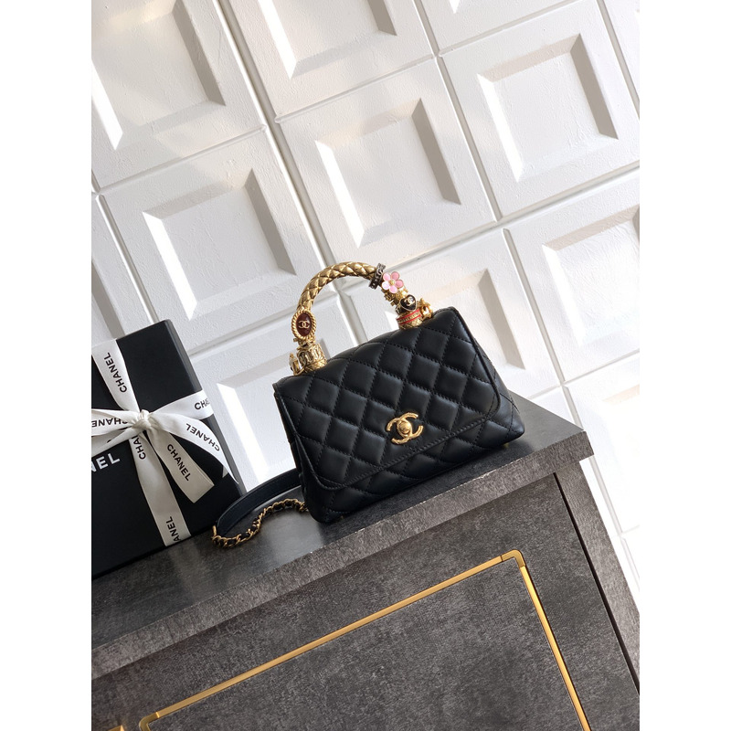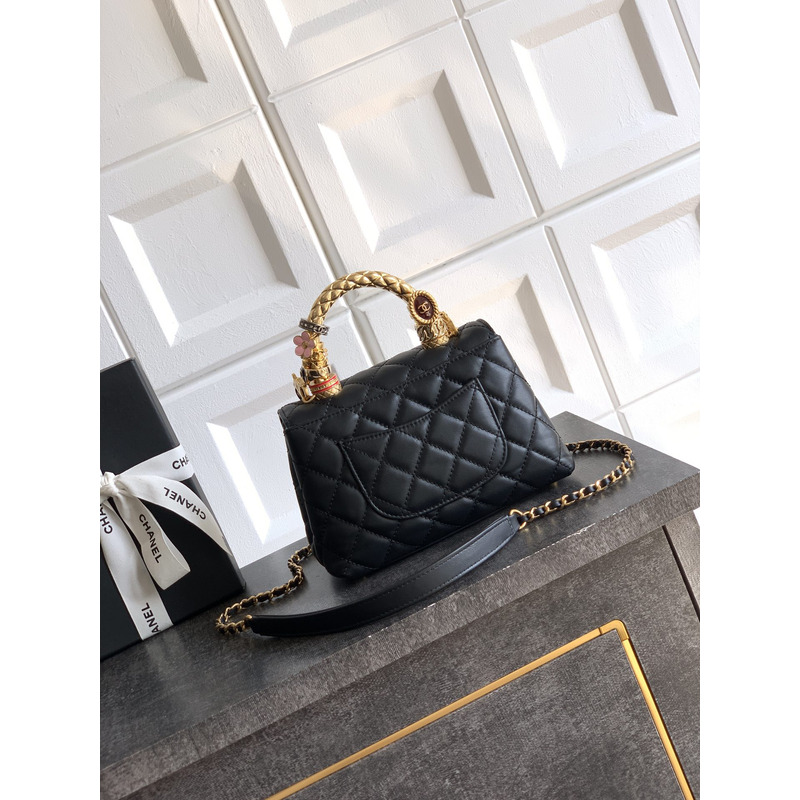 Chanel Small Coco Handle Quilted Leather Handbag With Decorative Handle In Black