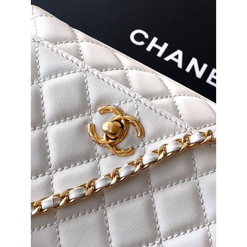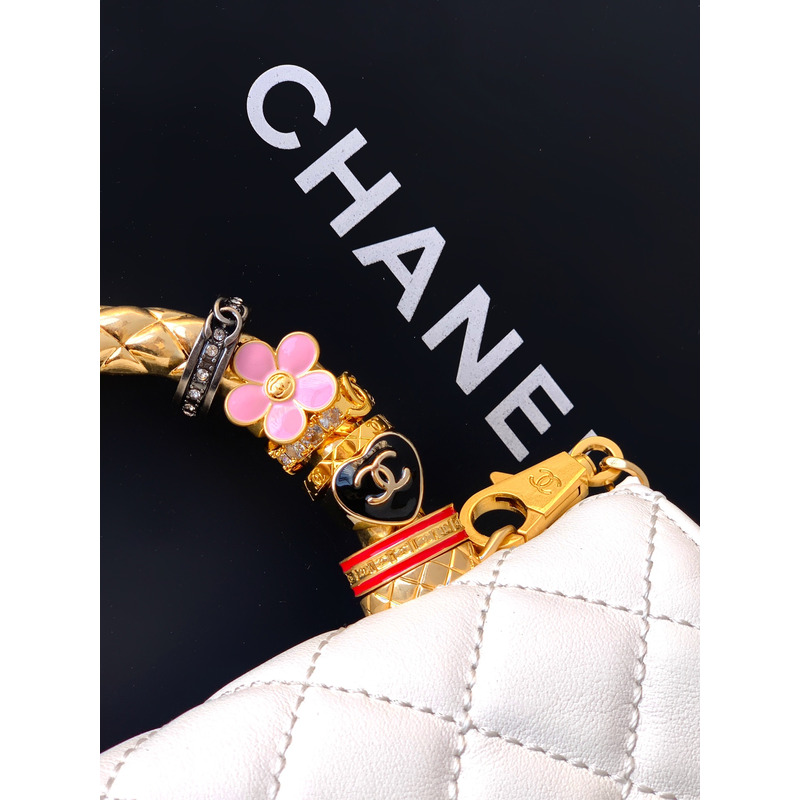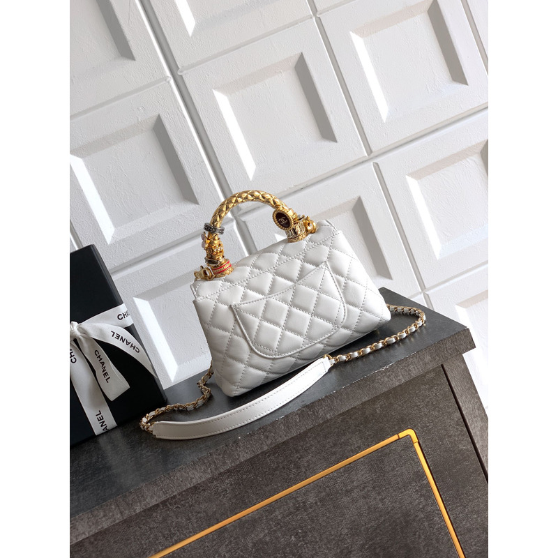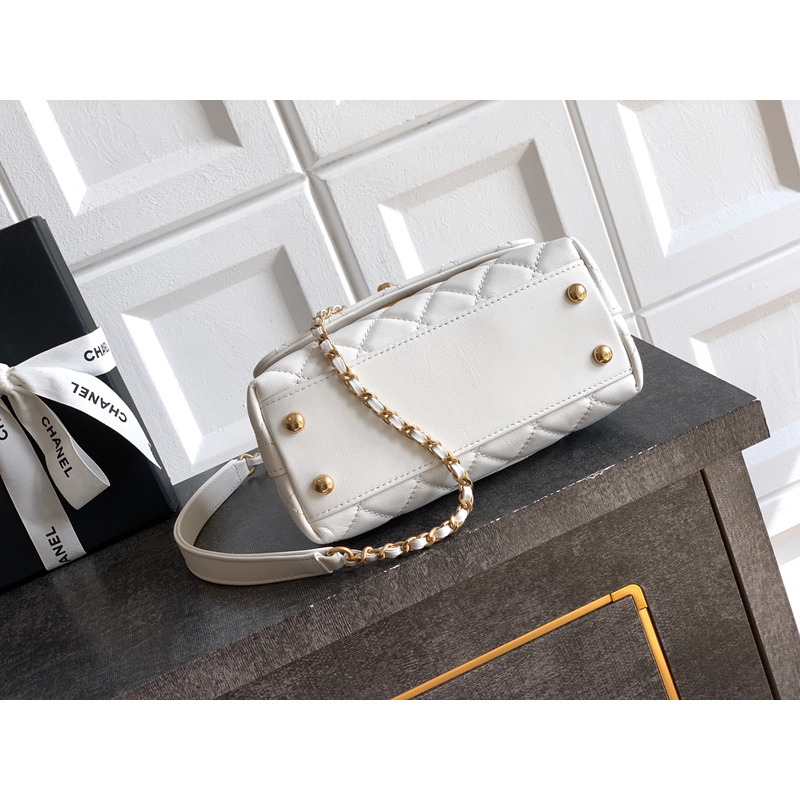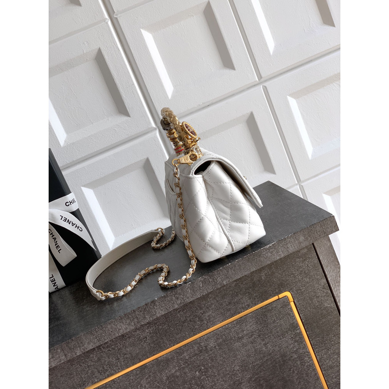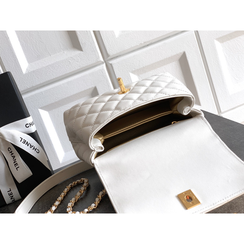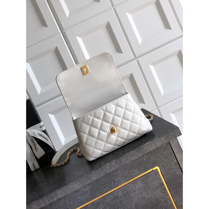 Chanel Small Flap Bag With Handle Leather In White