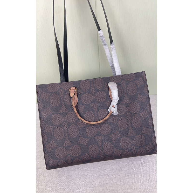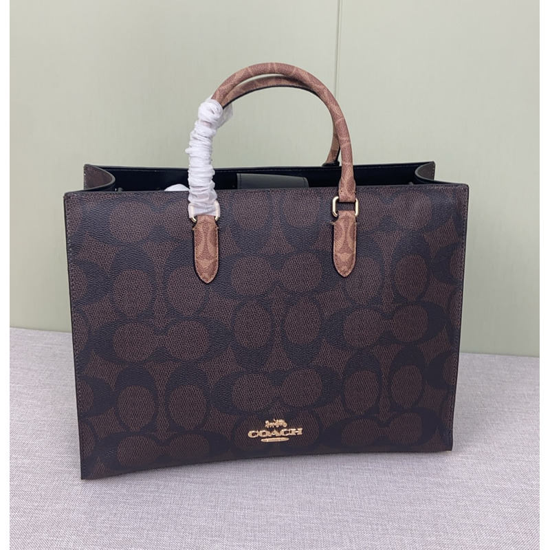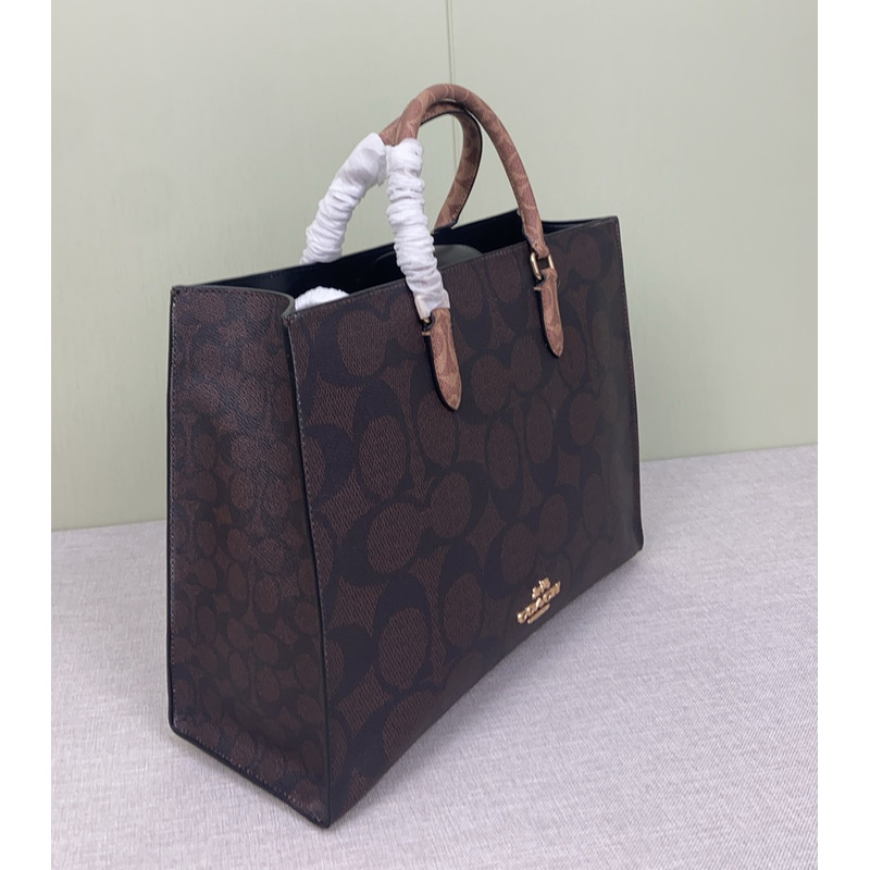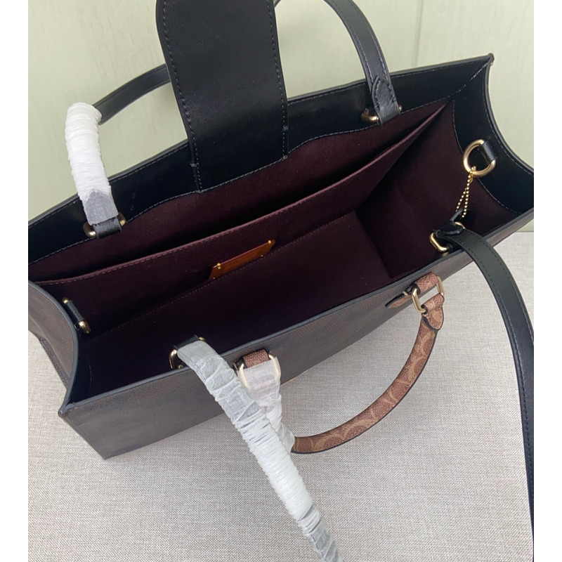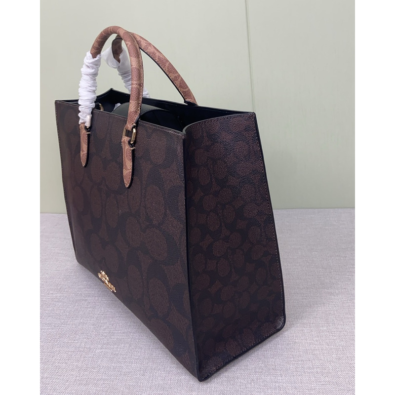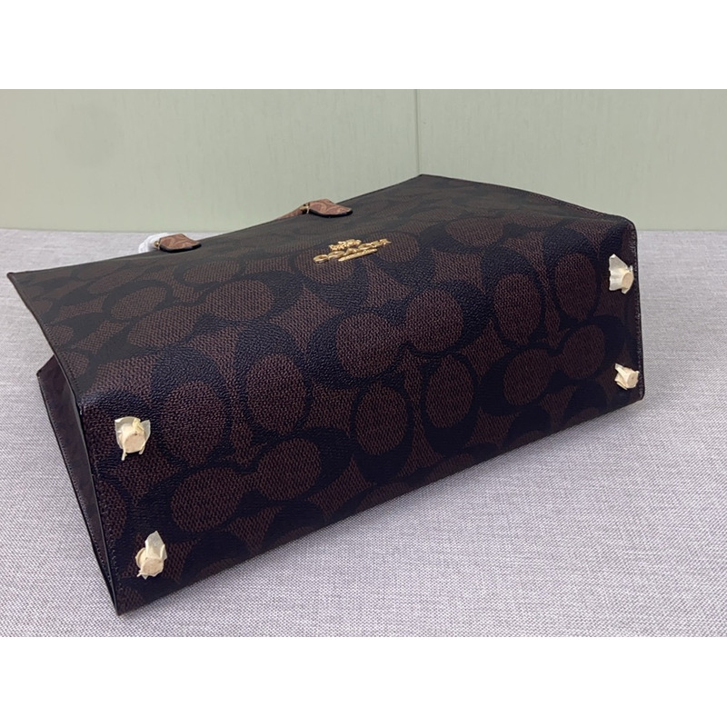 Coach Maggie Tote Bag In Blocked Signature Canvas Walnut/Tan