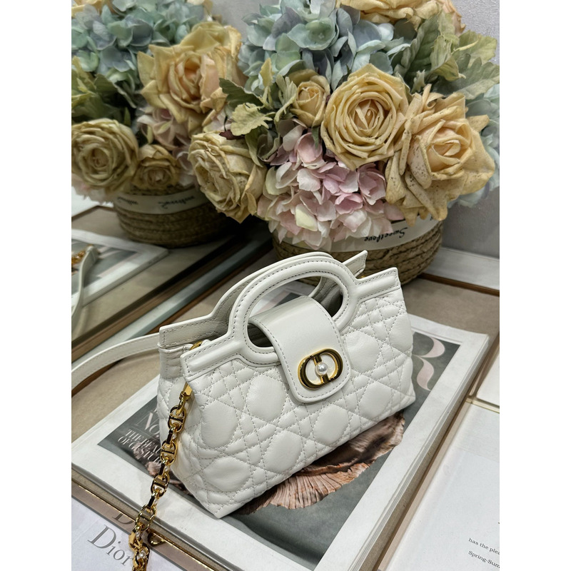 Dior Jolie Top Handle Mini Bag Latte Cannage Lambskin