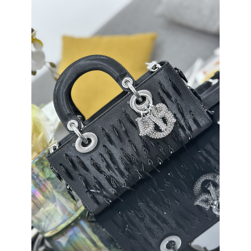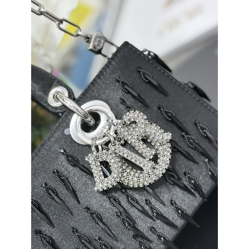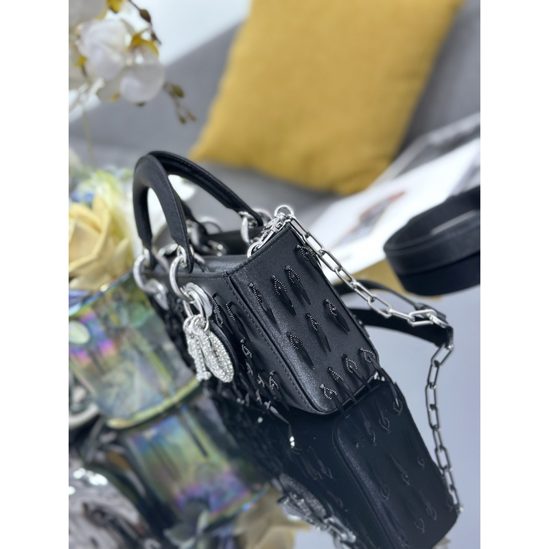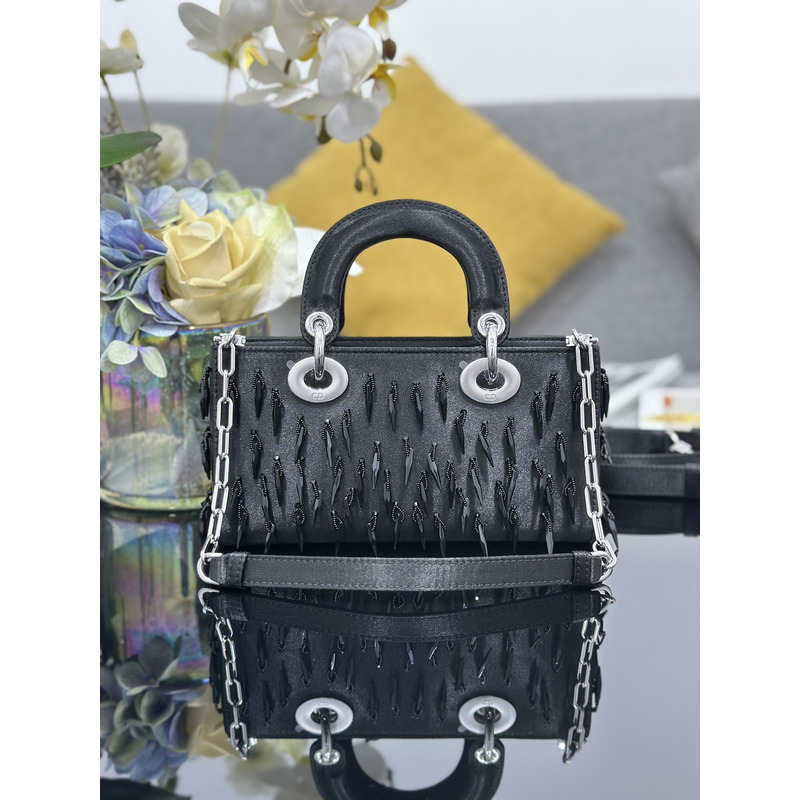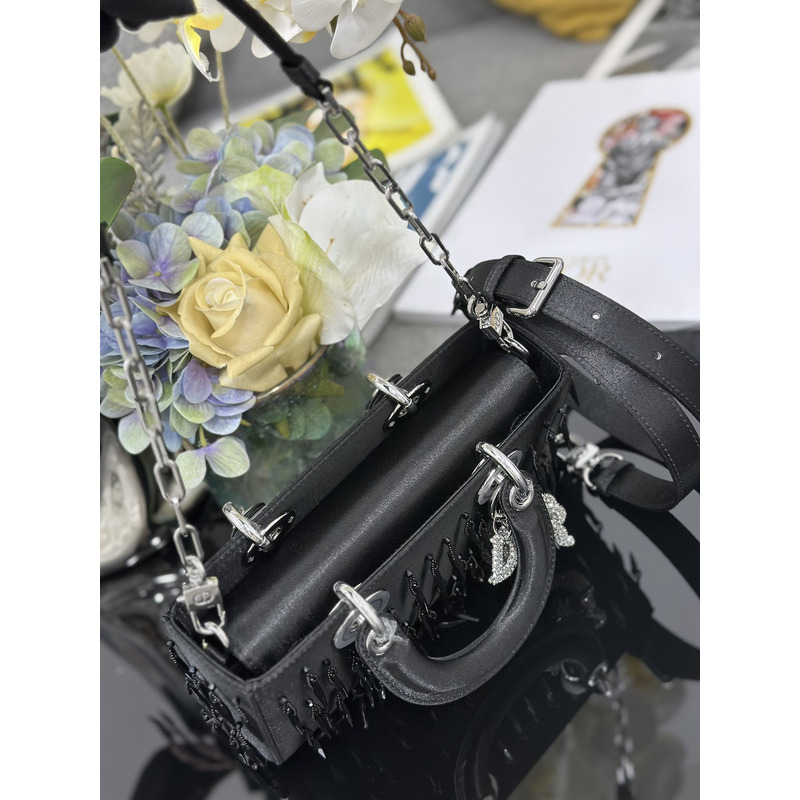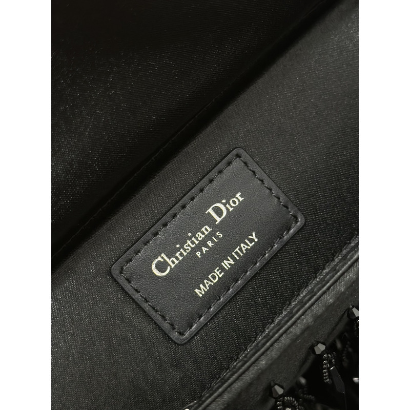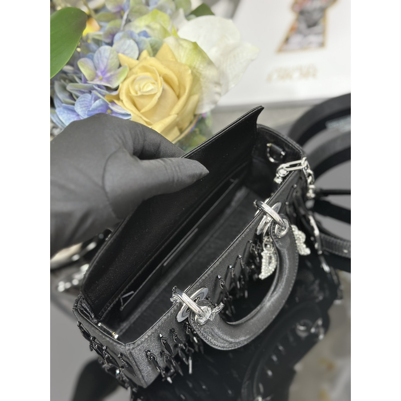 Dior Small Lady D-Joy Bag In Black With Fringe And Crystal Embellishments