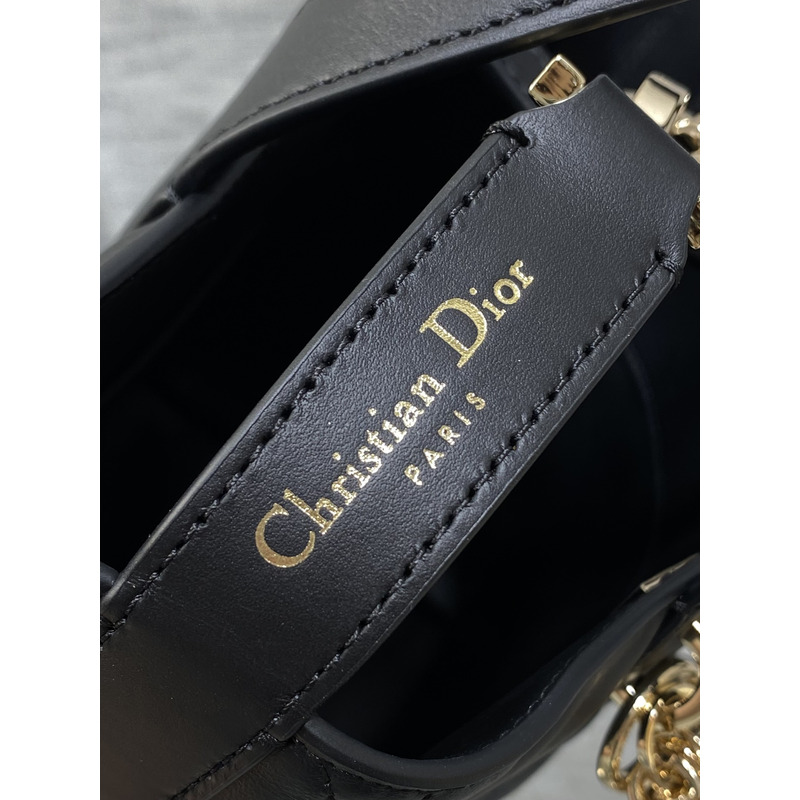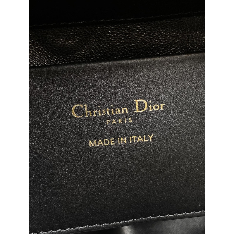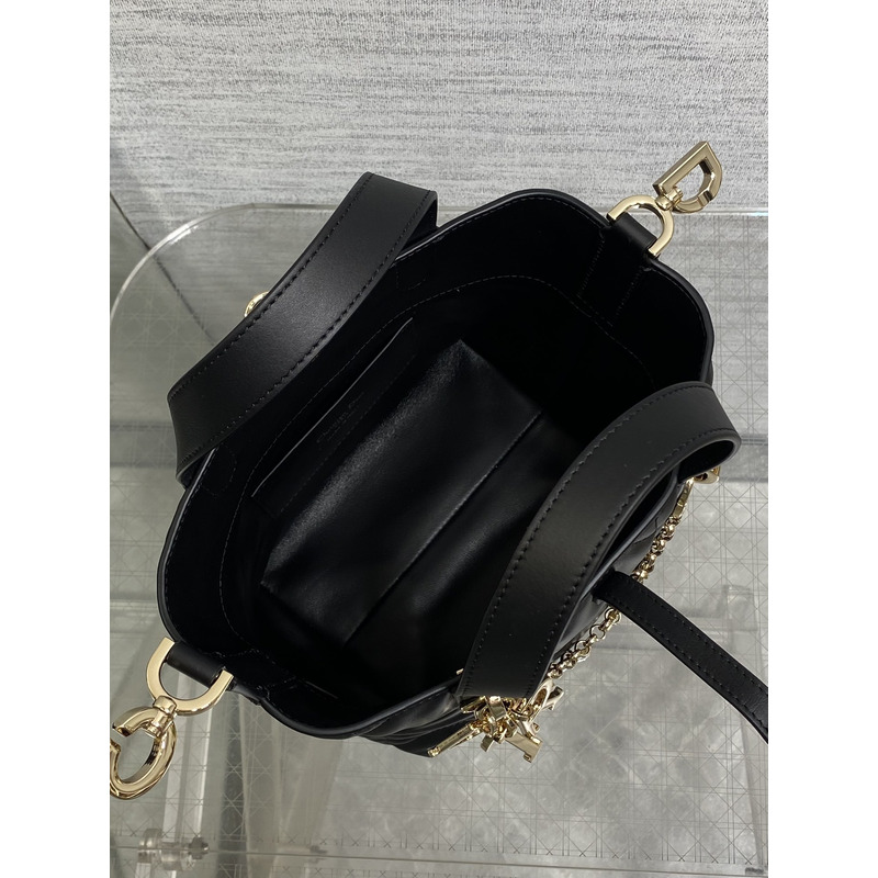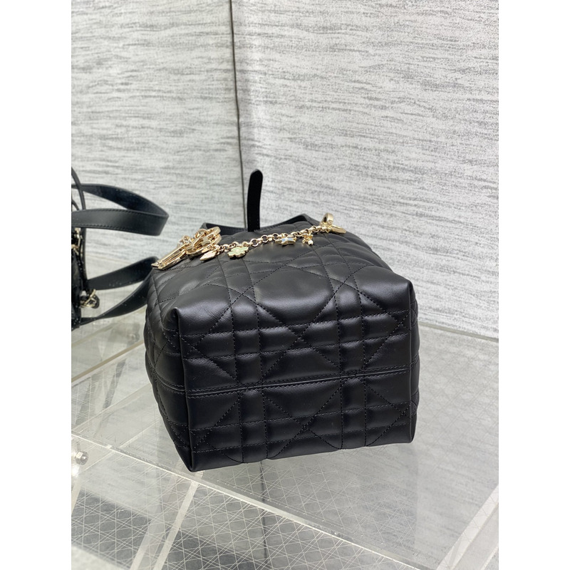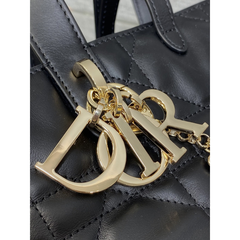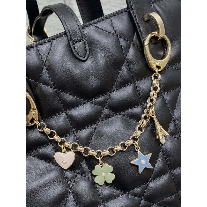 Dior Toujours Vertical Nano Tote Bag Black Macrocannage Calfskin with Charms