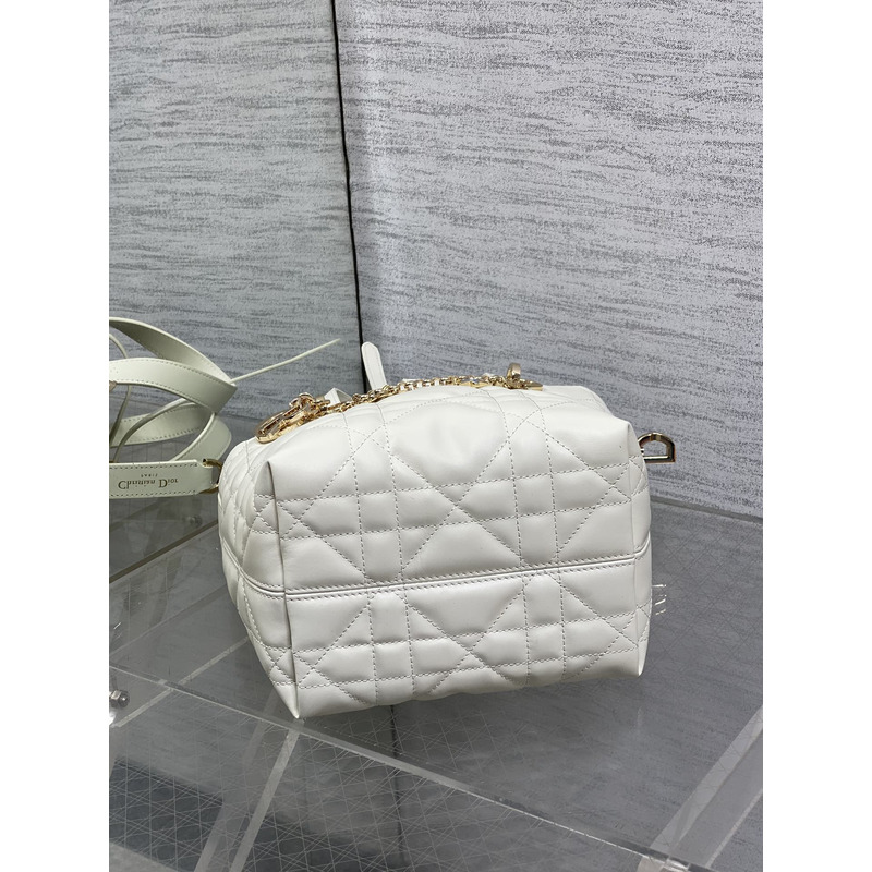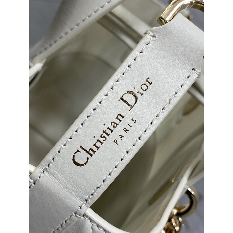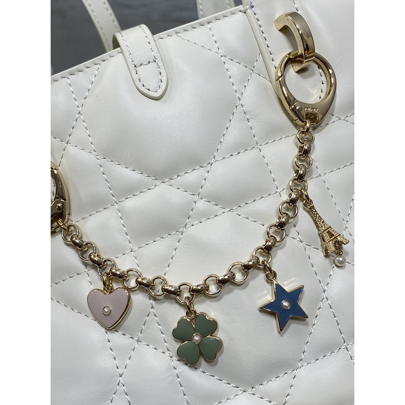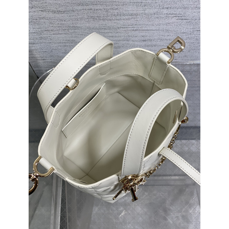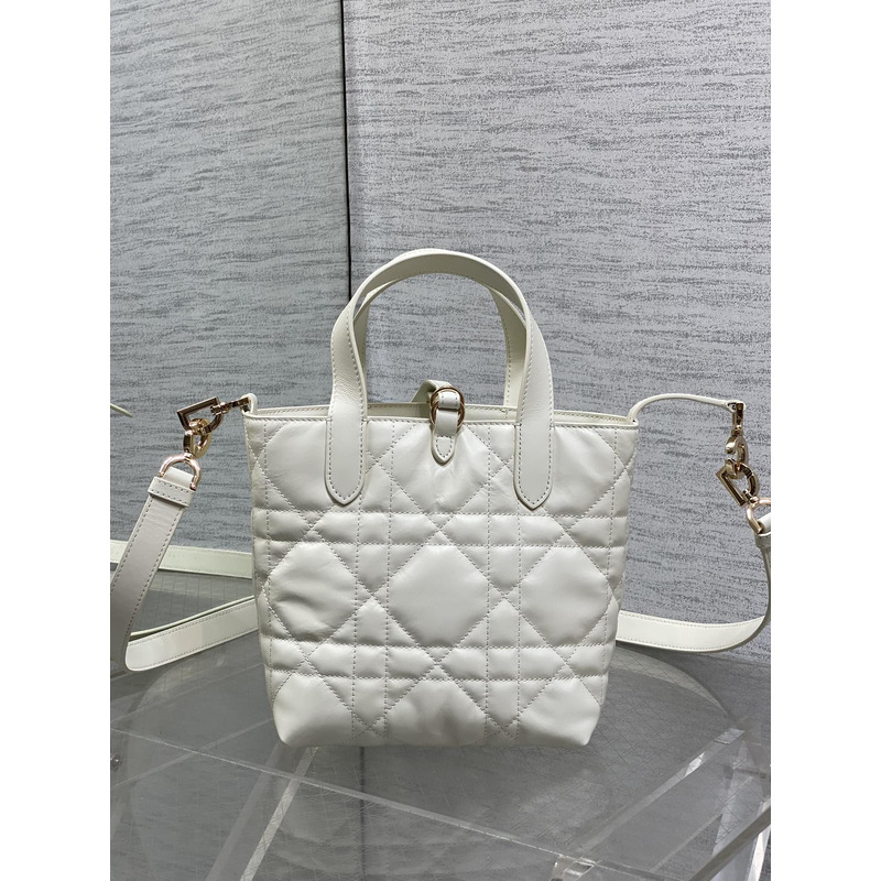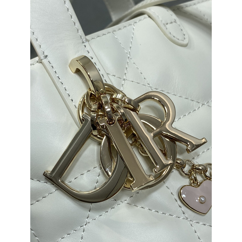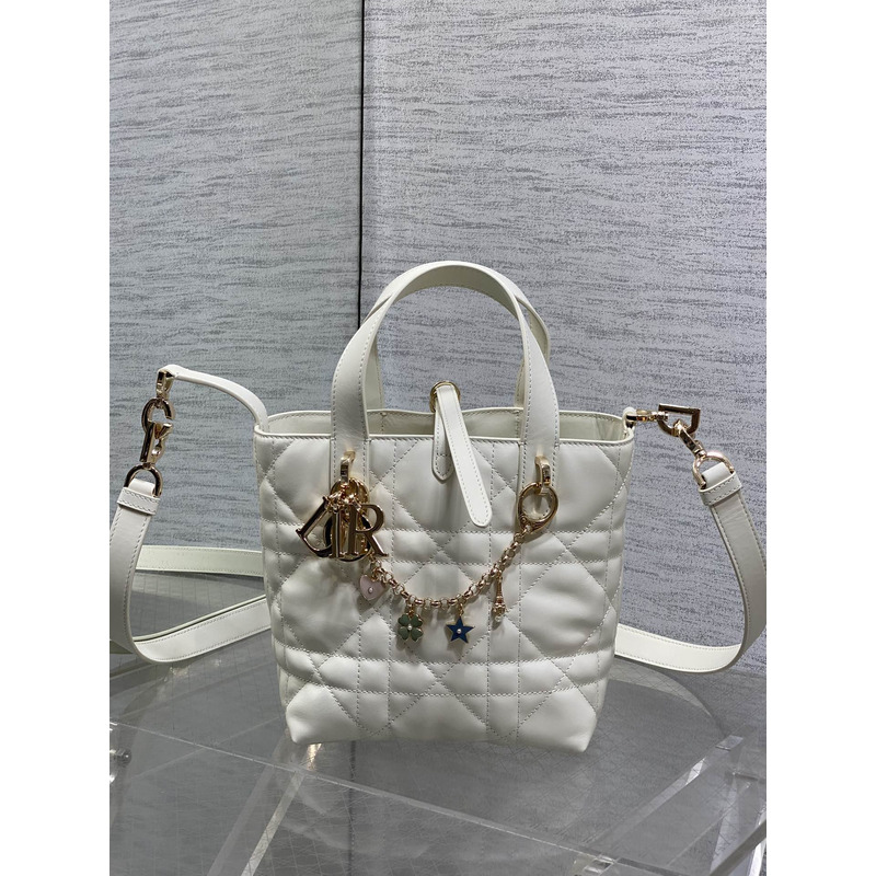 Dior Toujours Vertical Nano Tote Bag Ivory Macrocannage Calfskin with Charms