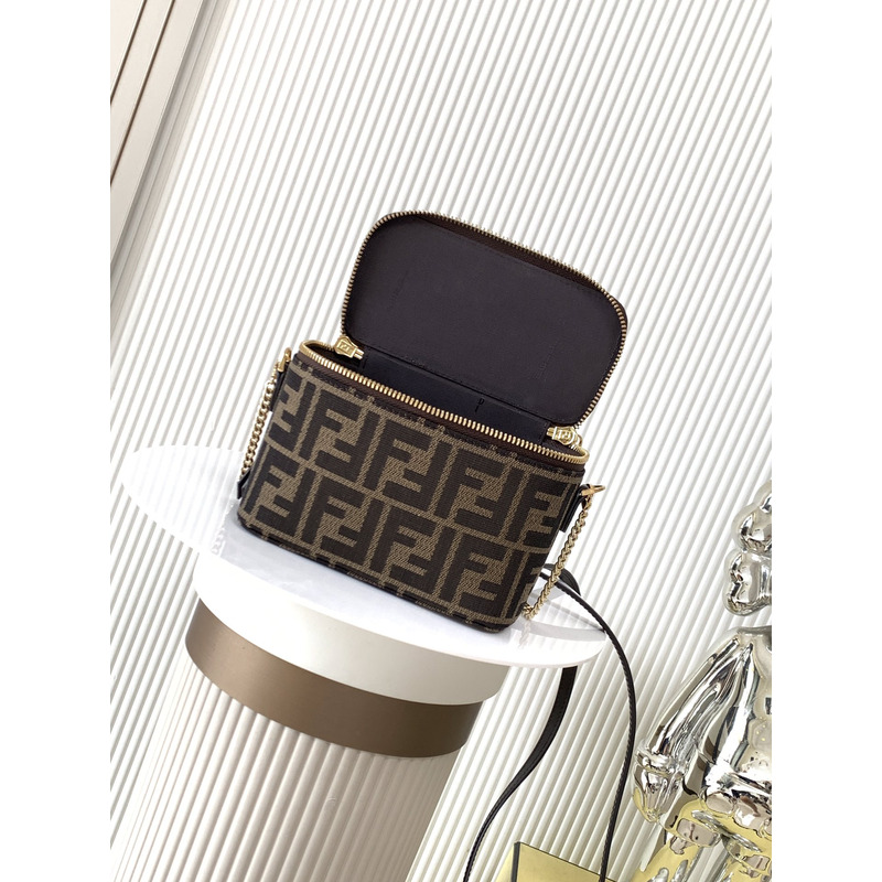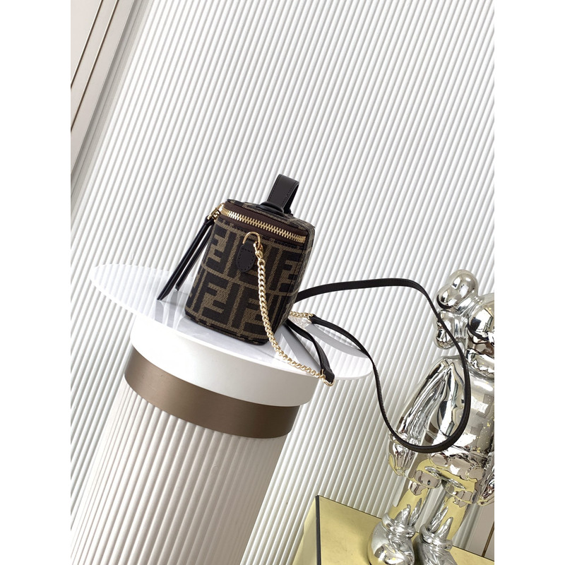 Fendi Vanity Mini Baguette Bag With FF Jacquard In Brown