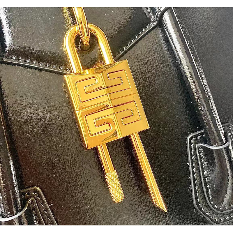Givenchy Antigona Solid Gold-Tone Lock Handbag Leather In Black