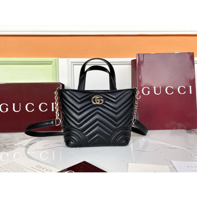 Gucci Betty Small Tote Bag In Black Leather Leather