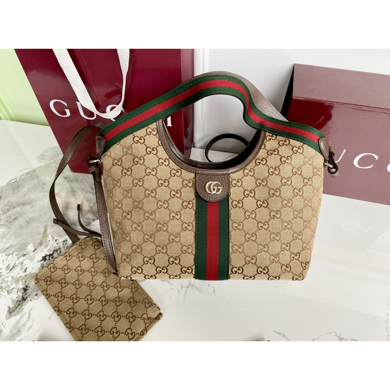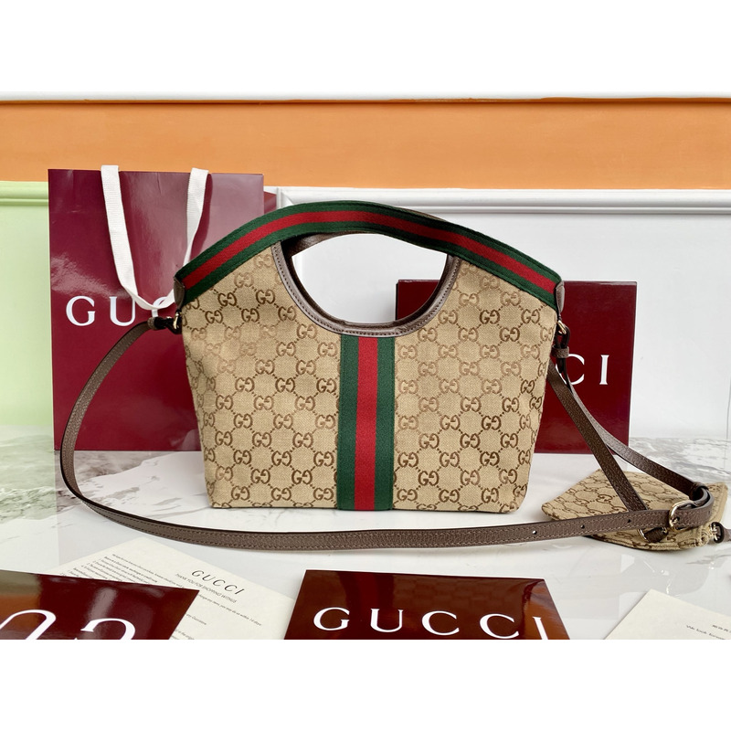 Gucci Giglio Small Tote Bag Beige And Dark Brown