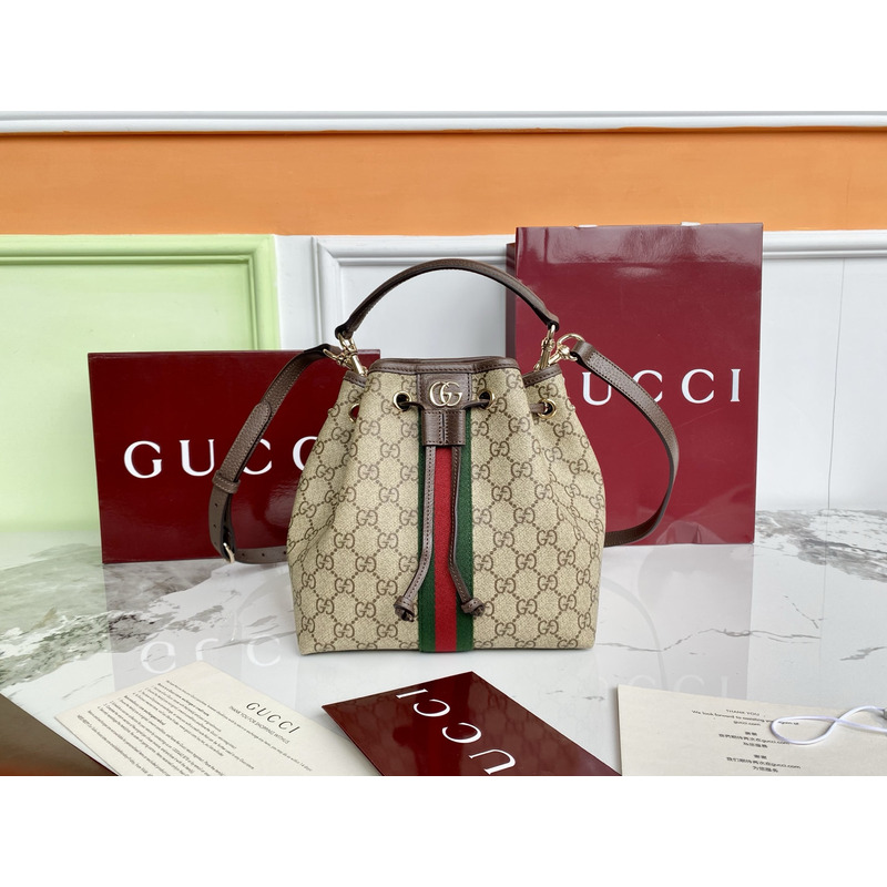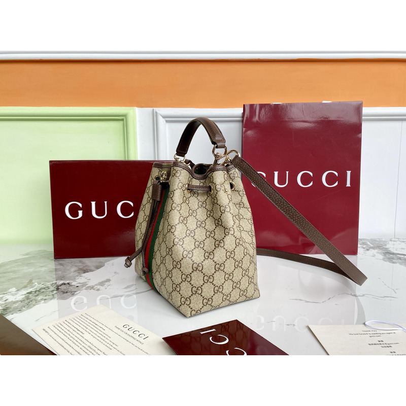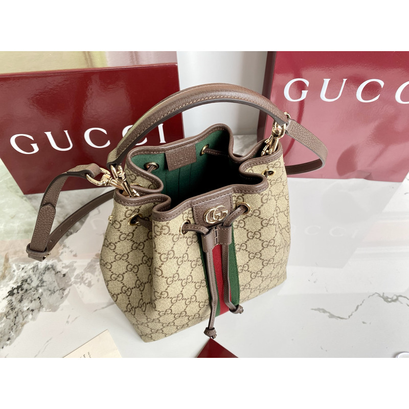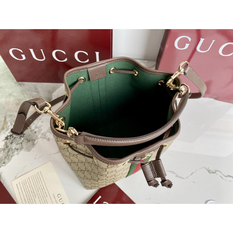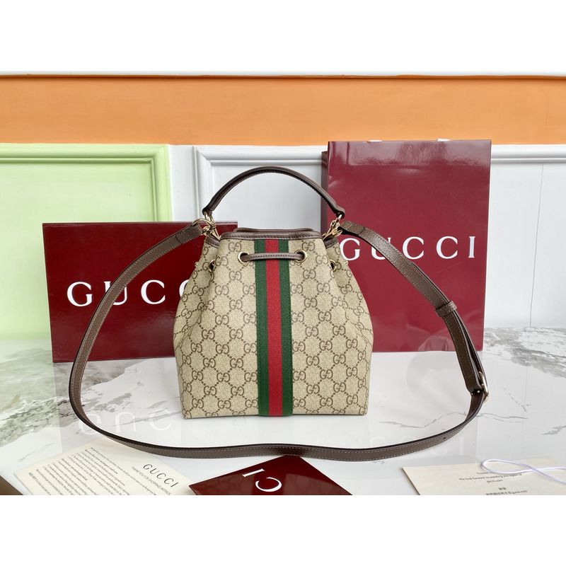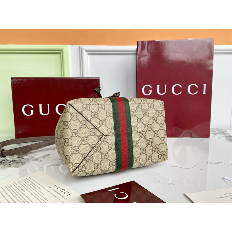 Gucci Ophidia Small Bucket Bag Beige And Dark Brown