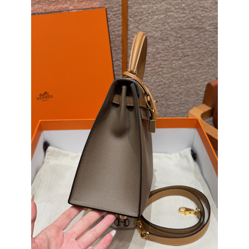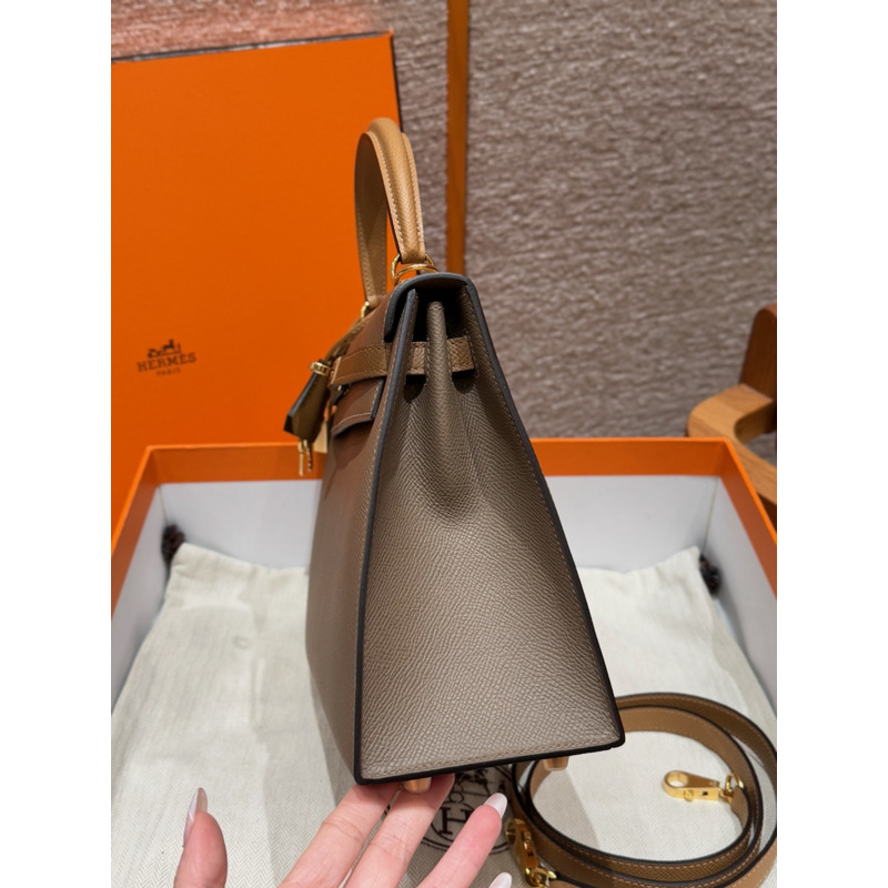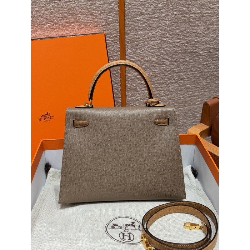 Hermes Kelly 25 In Epsom Leather With Gold Hardware Etoupe