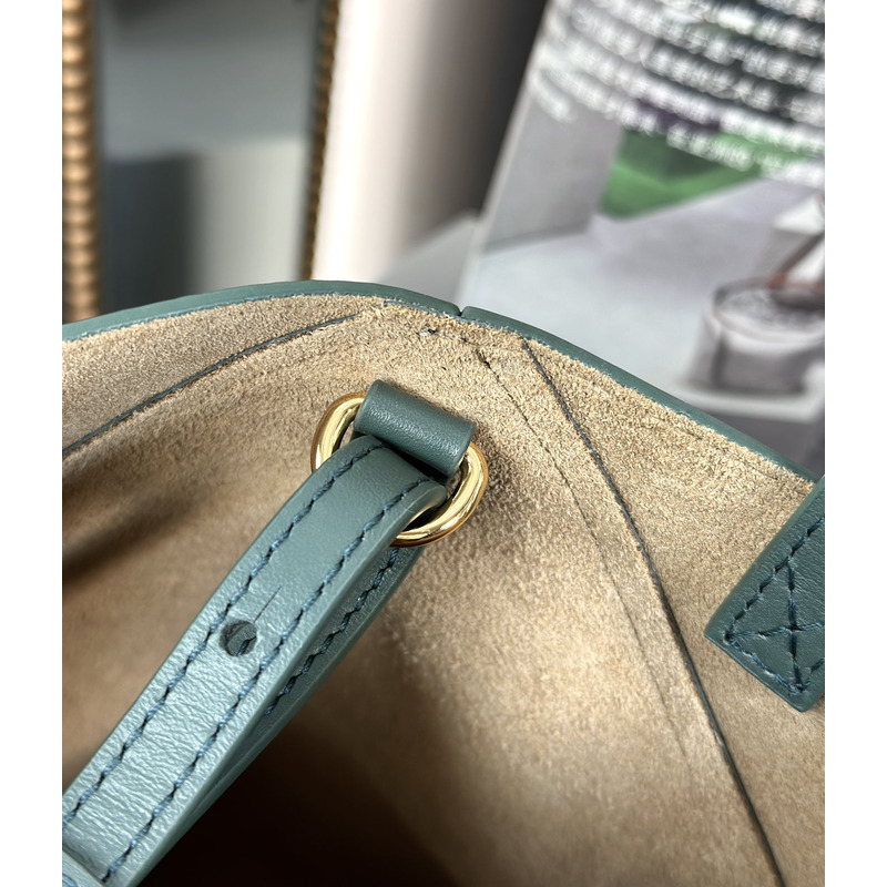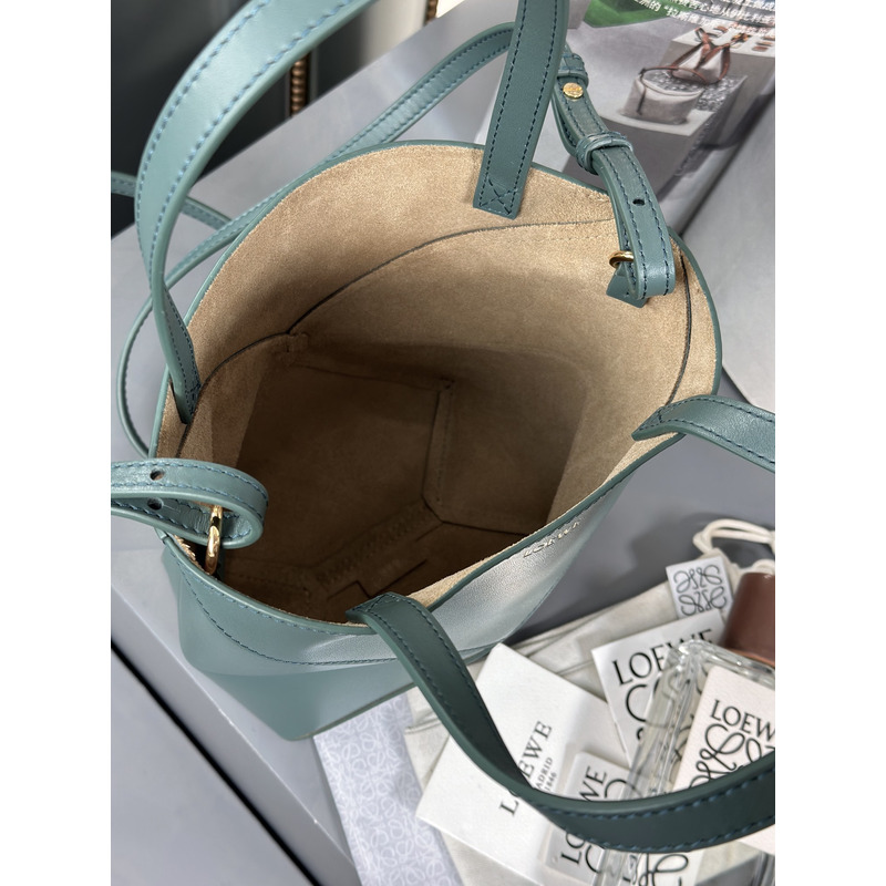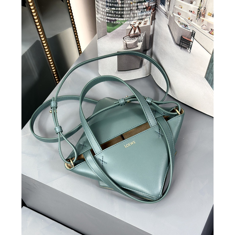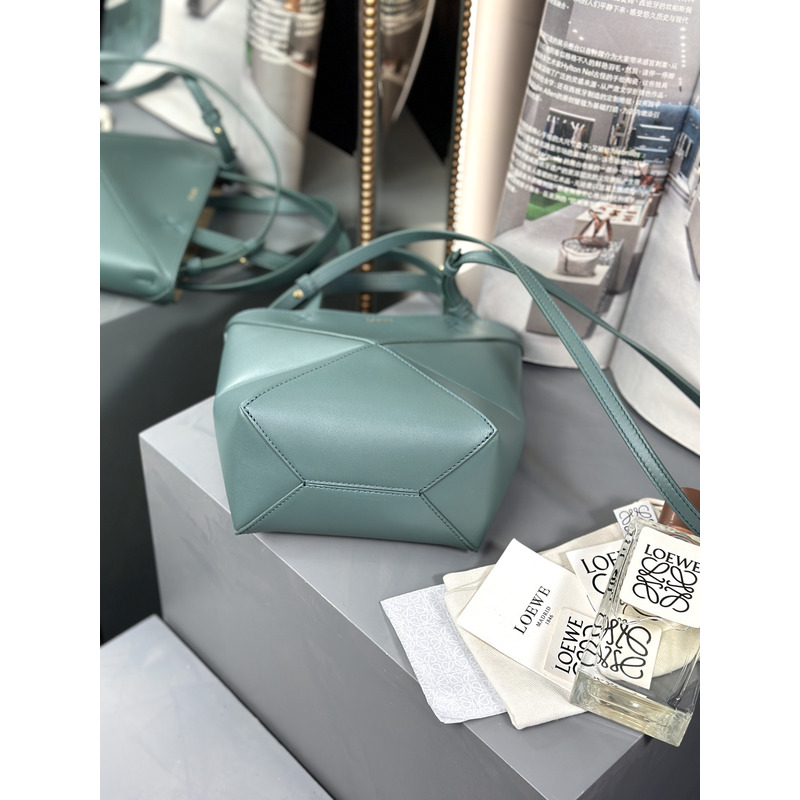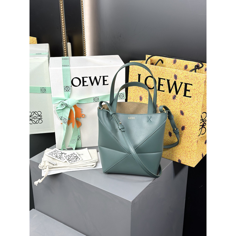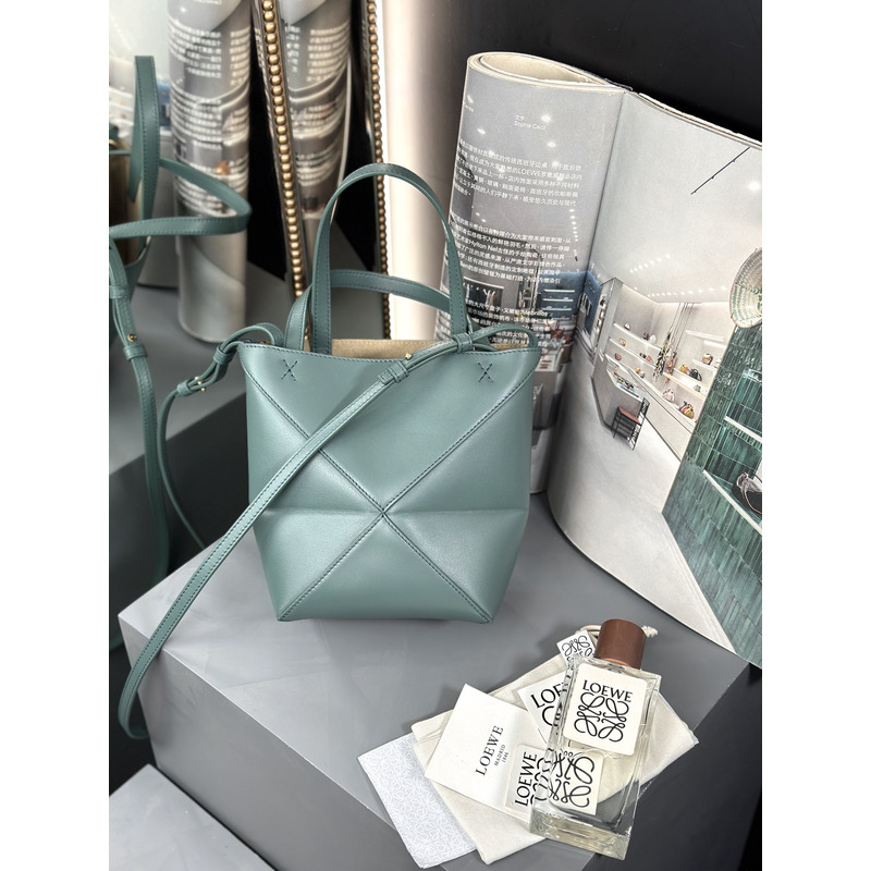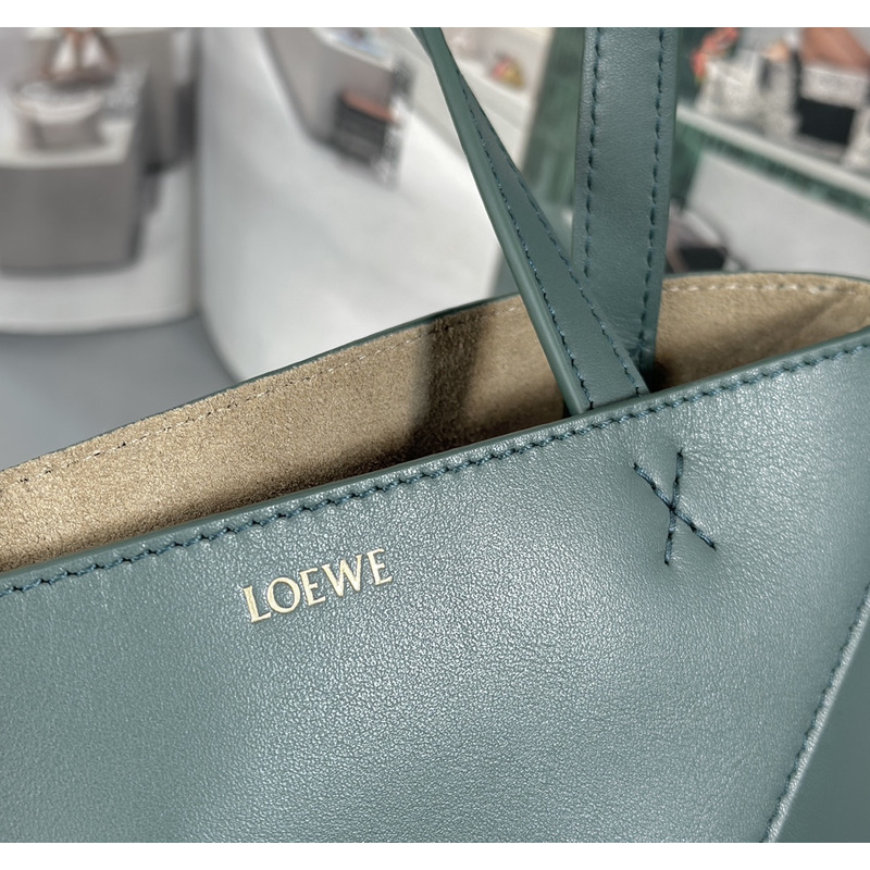 Loewe Mini Puzzle Fold Tote In Shiny Calfskin Grayish Green