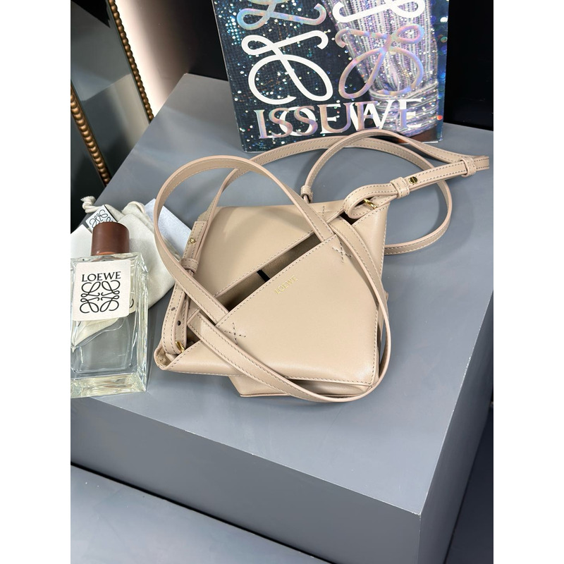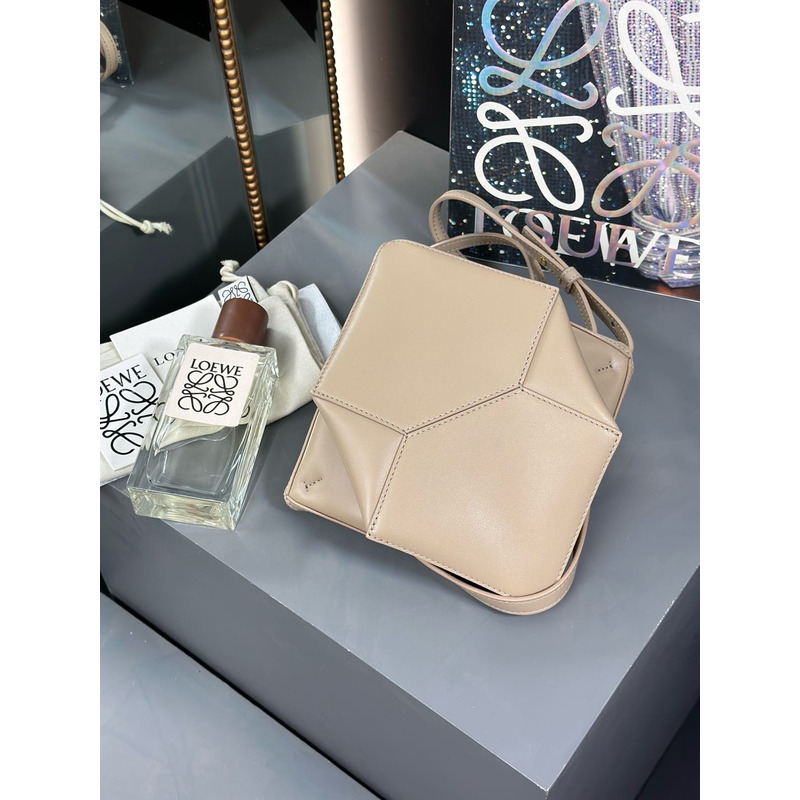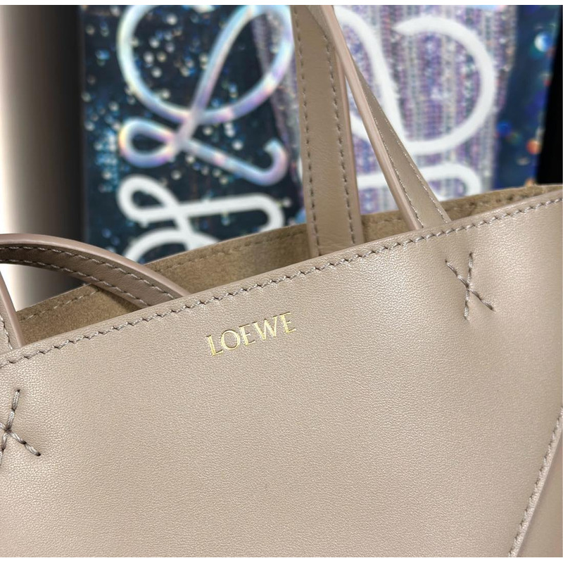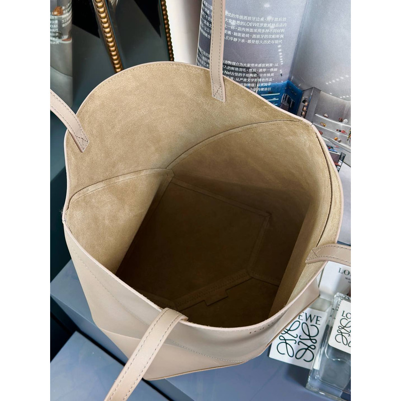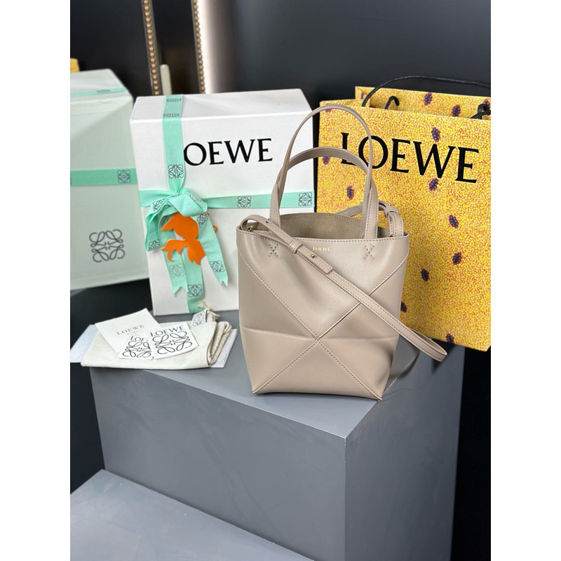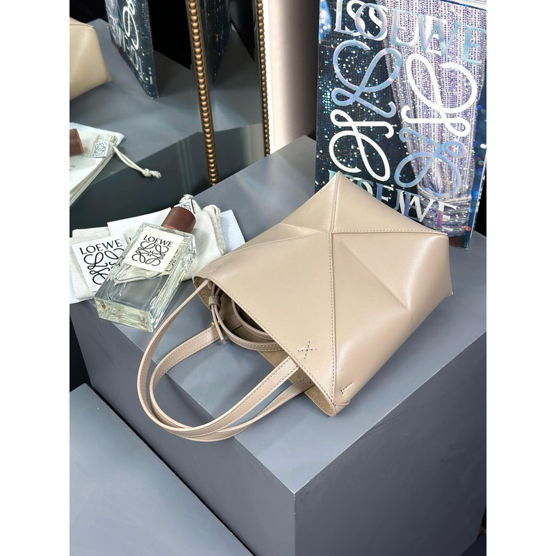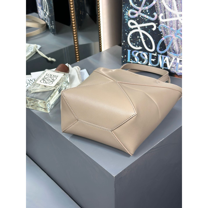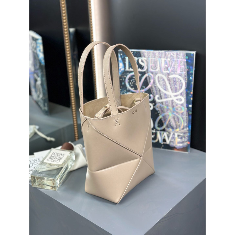 Loewe Mini Puzzle Fold Tote In Shiny Calfskin Light Beige