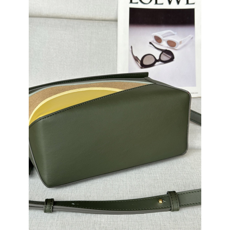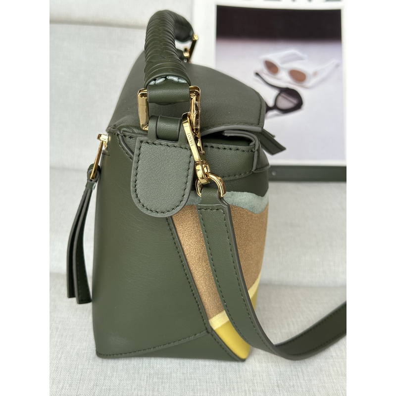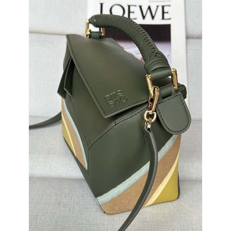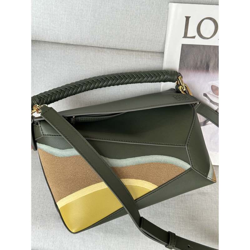 Loewe Small Puzzle Edge Landscape Bag In Nappa Calfskin Bottle Green / Ochre