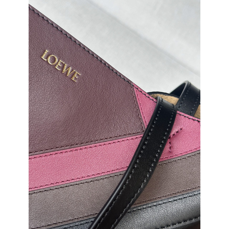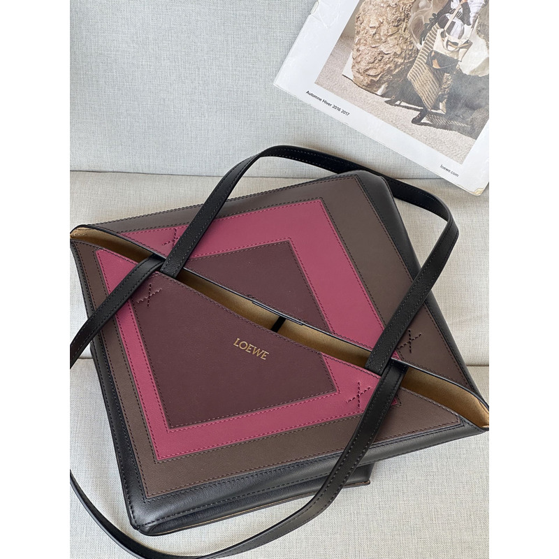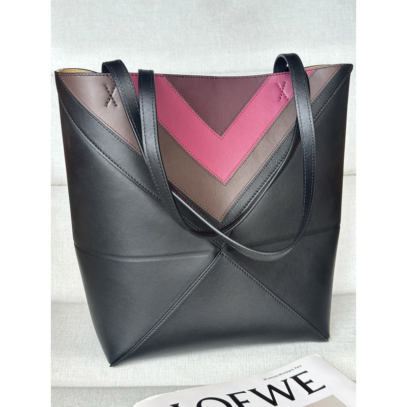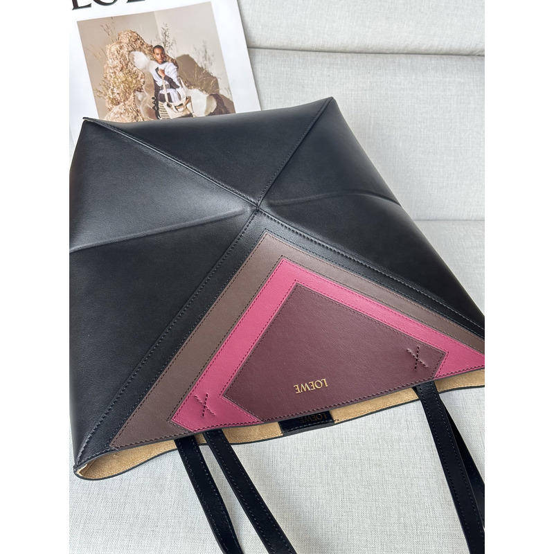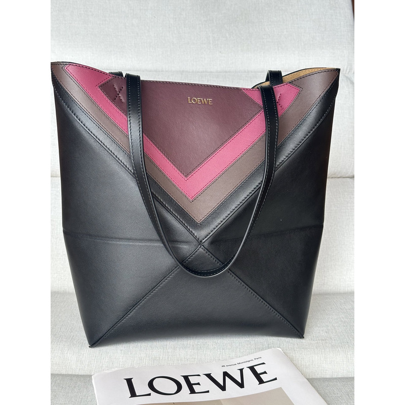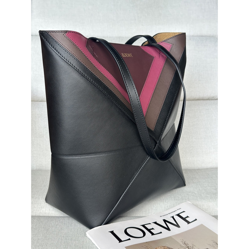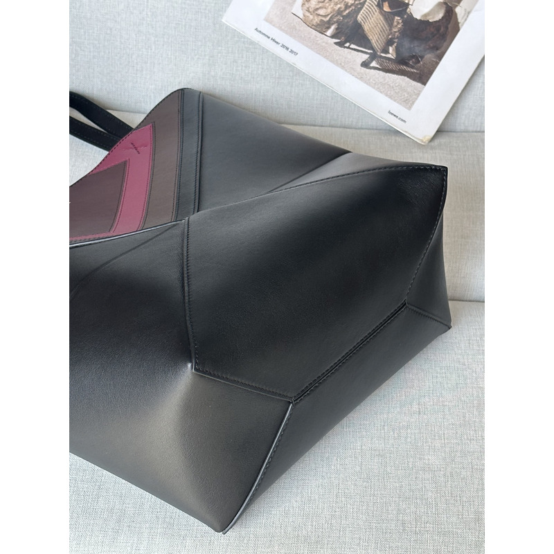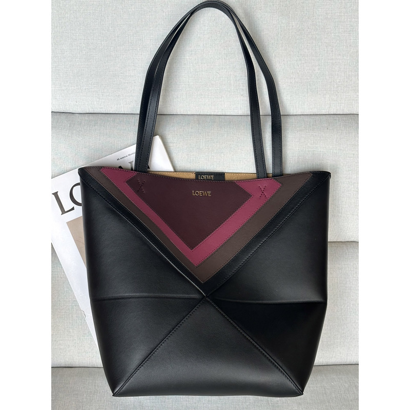 Loewe x Albers Medium Puzzle Fold Tote In Nappa Calfskin Black / Burgundy