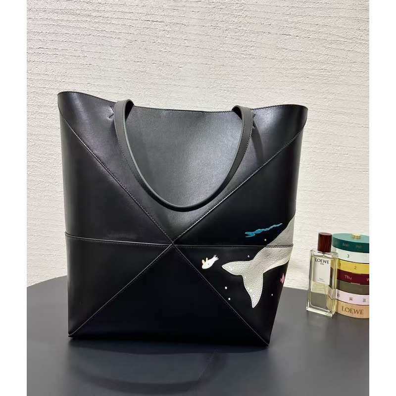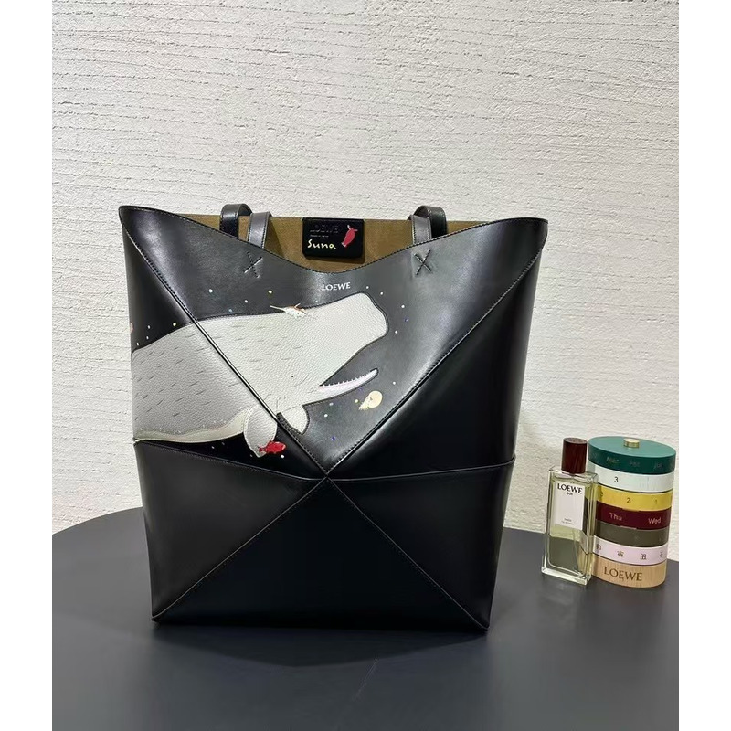 Loewe X Suna Fujita Large Puzzle Fold Tote Bag Black