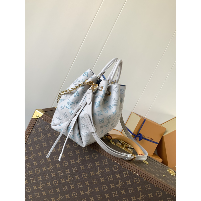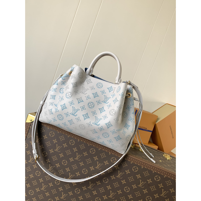 Louis Vuitton Bella Tote Perforated Mahina Calfskin Leather In Light Grey
