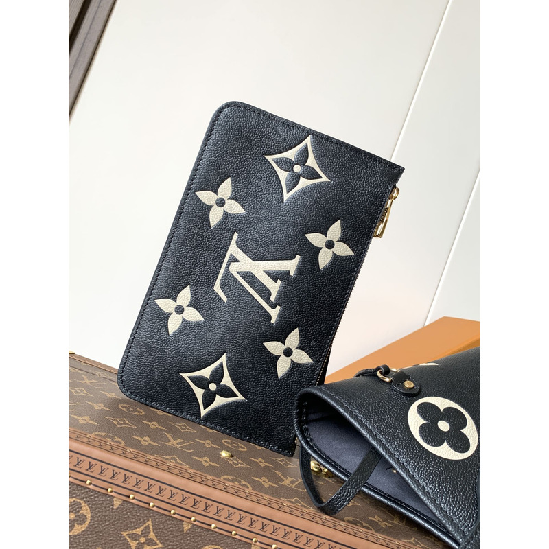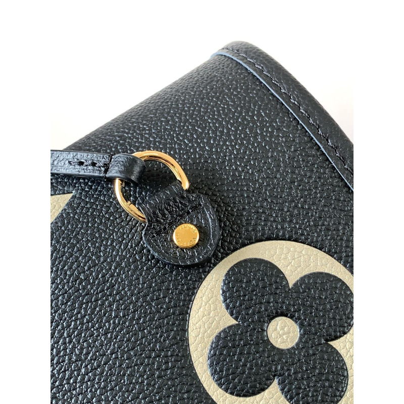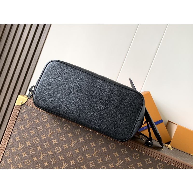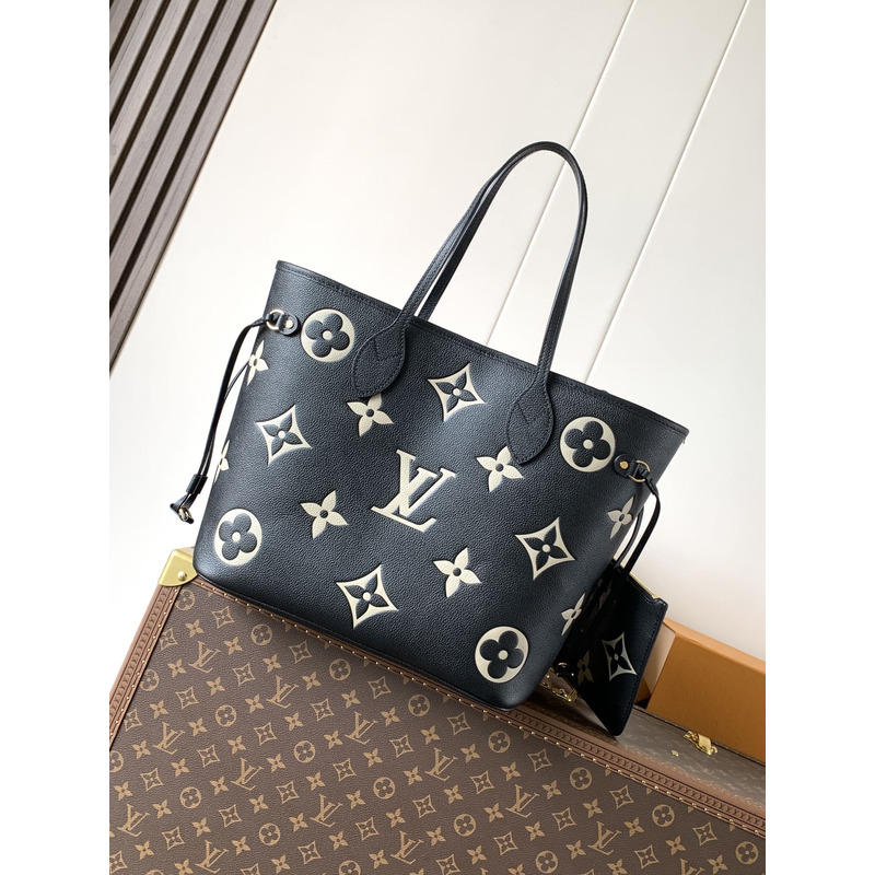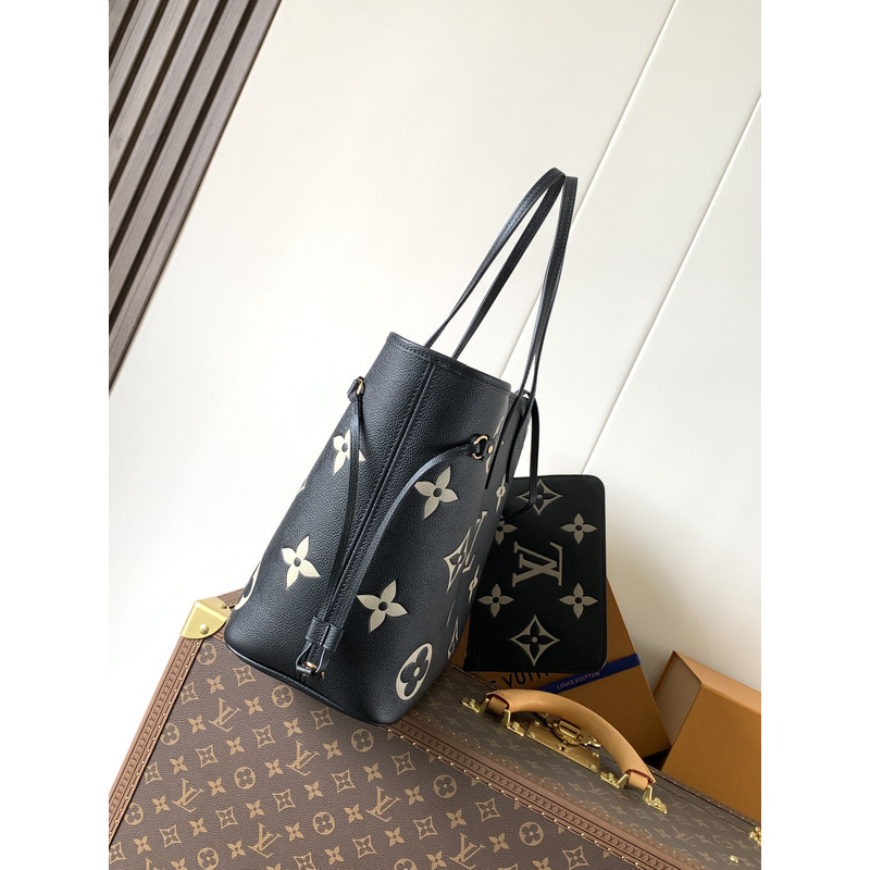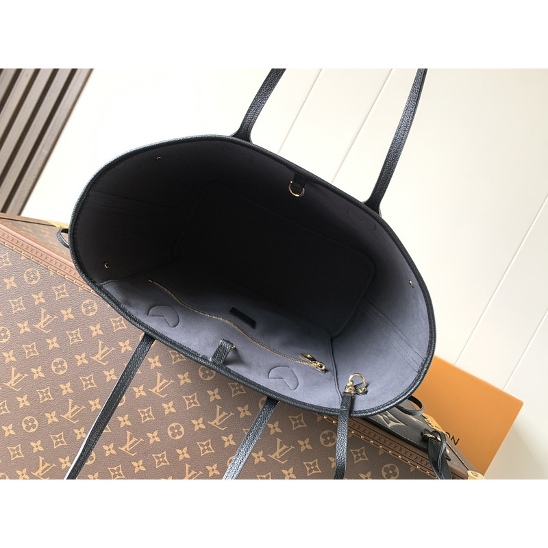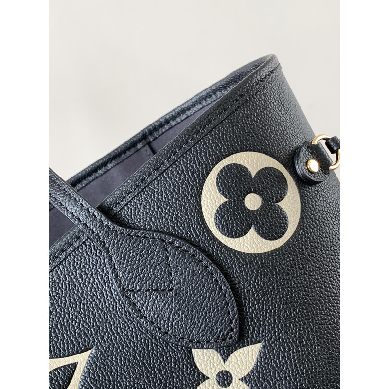 Louis Vuitton Neverfull MM Bag Monogram Empreinte Embossed Cowhide Leather In Black / Beige