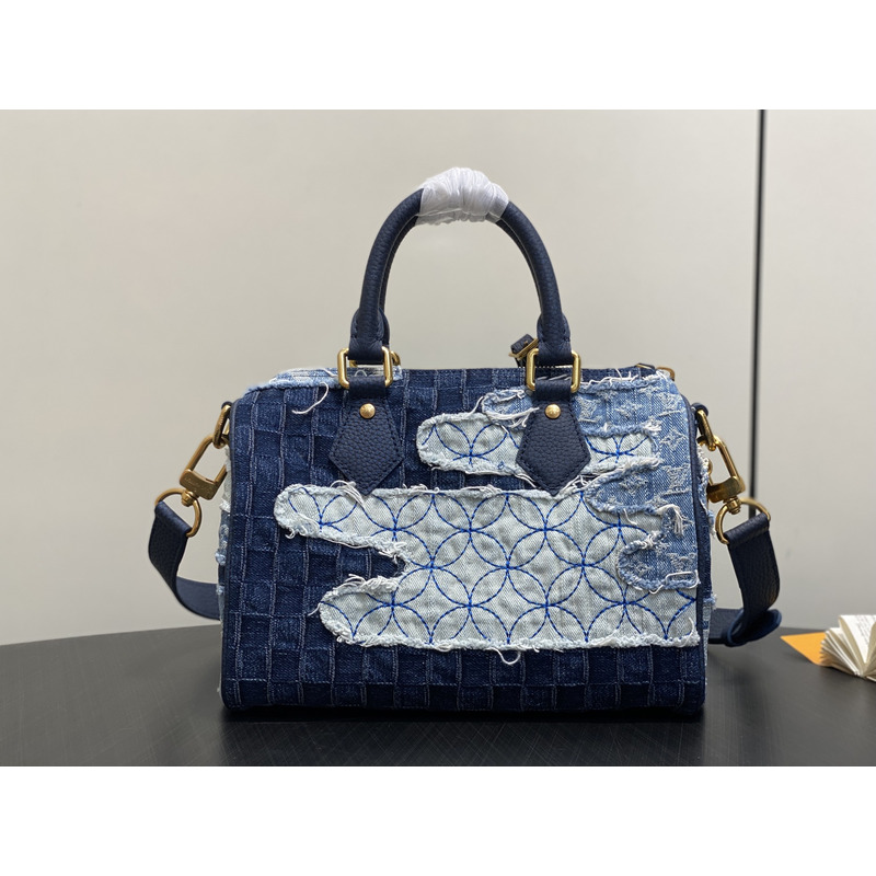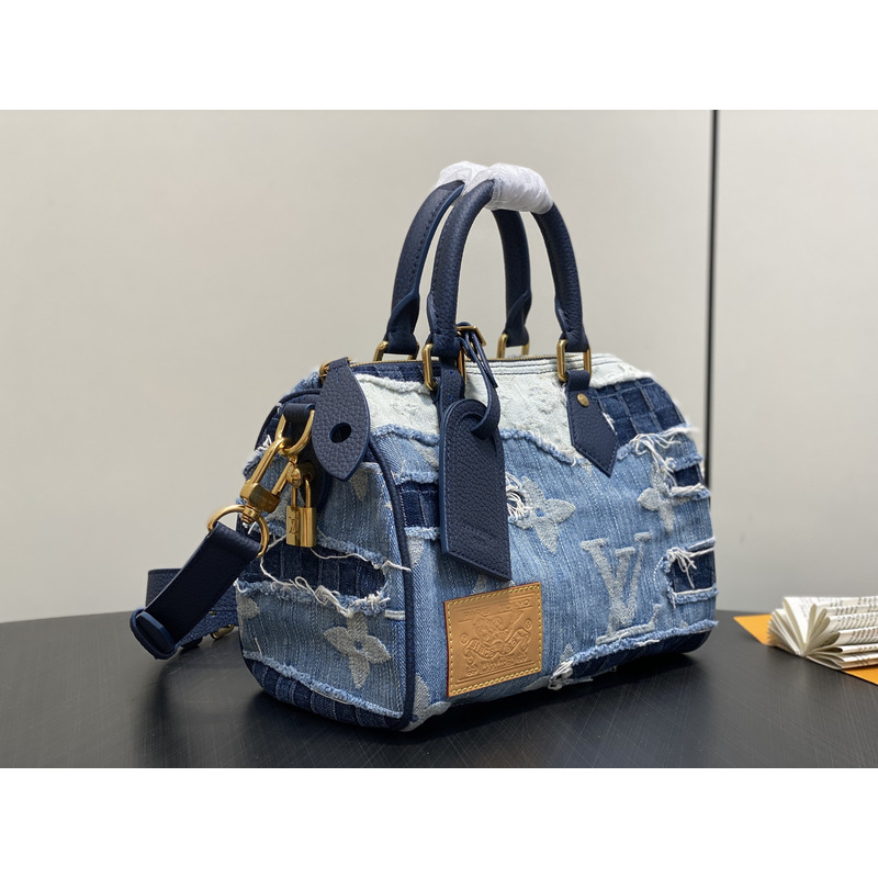 Louis Vuitton Speedy 25 Bandoulière Handbag In Blue Denim