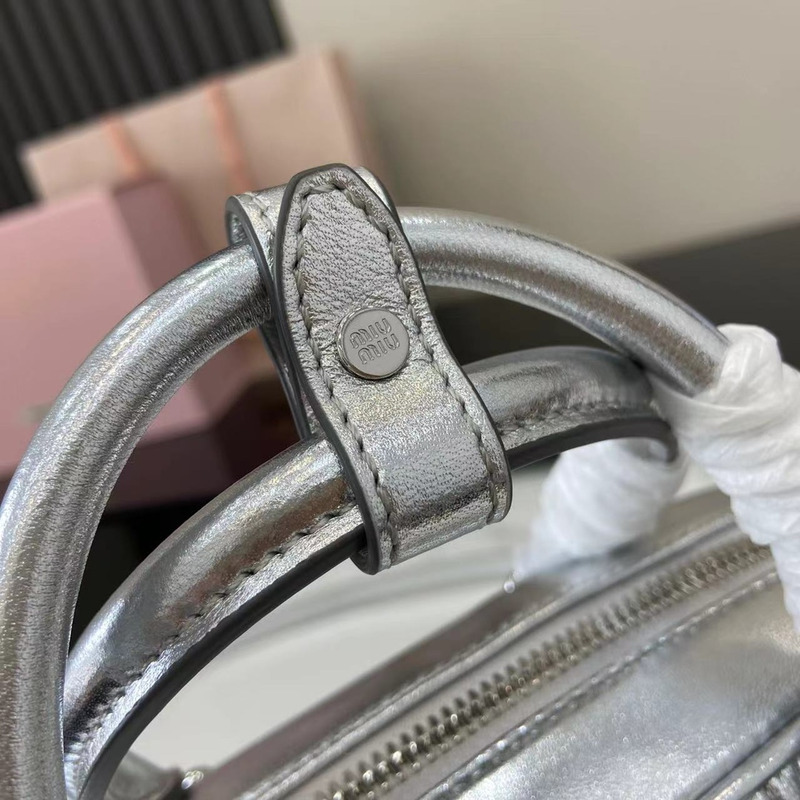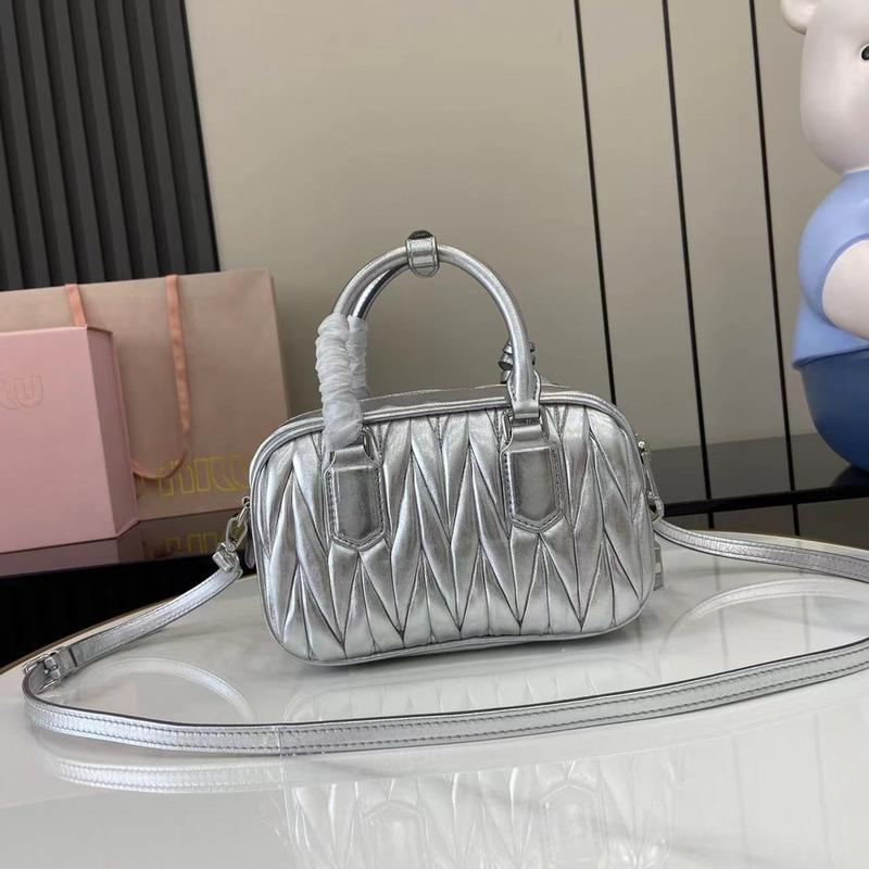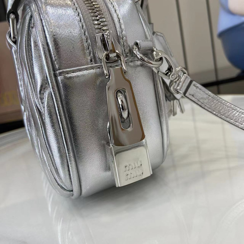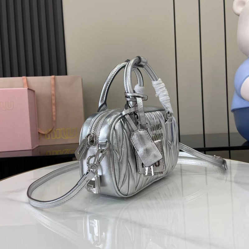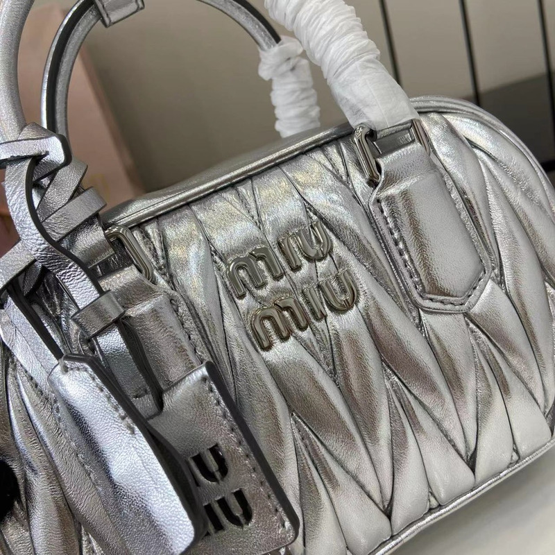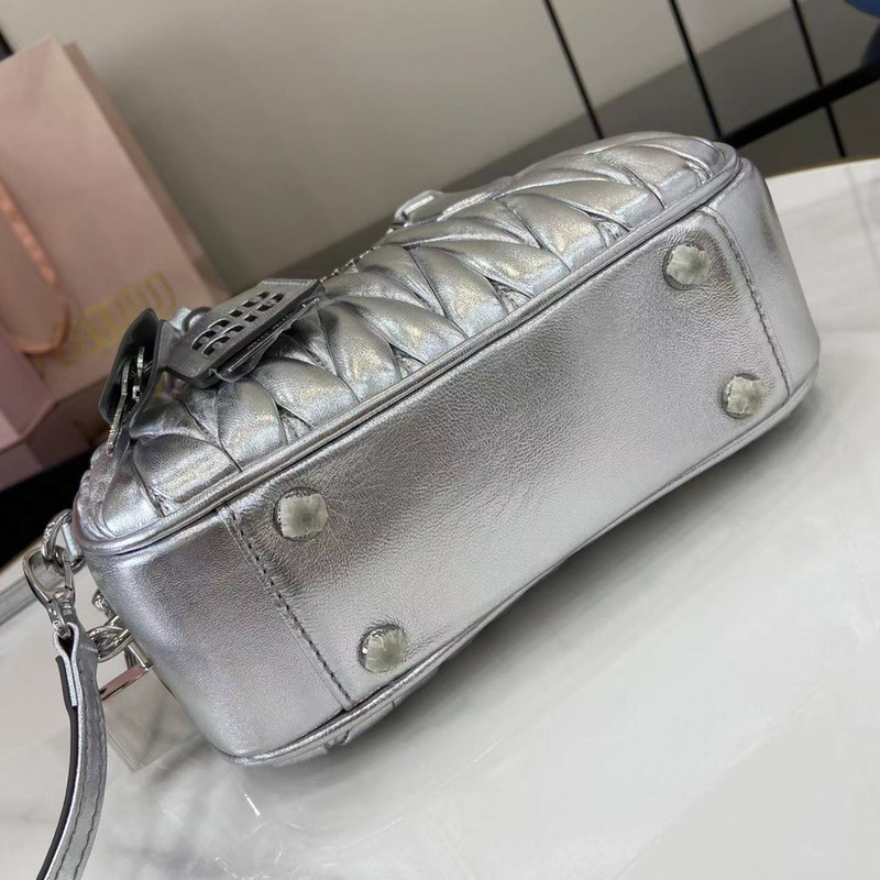 Miu Miu Arcadie Matelassé Nappa Leather Mini-Bag In Silver