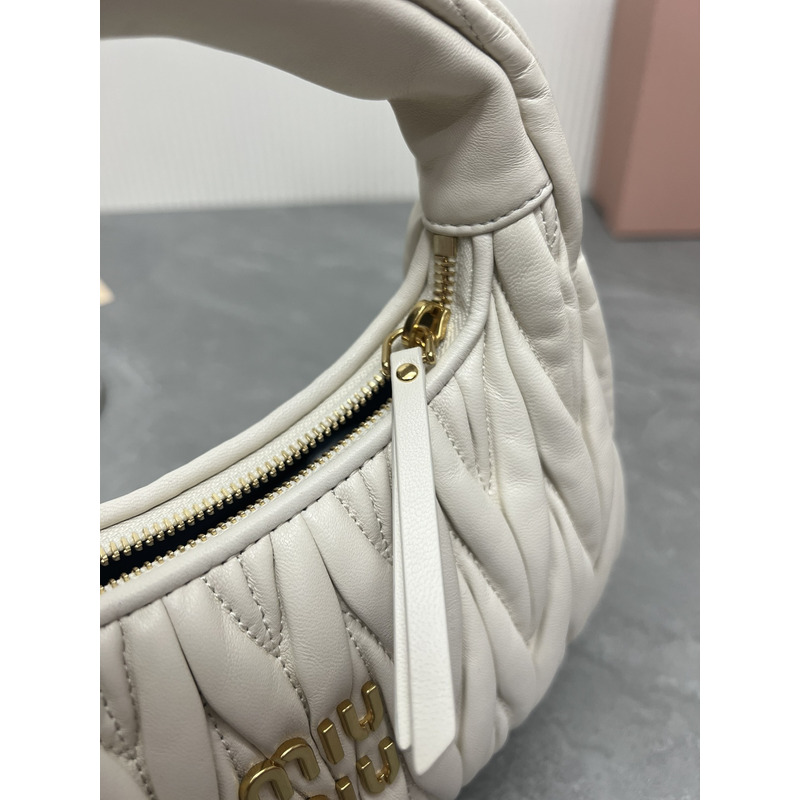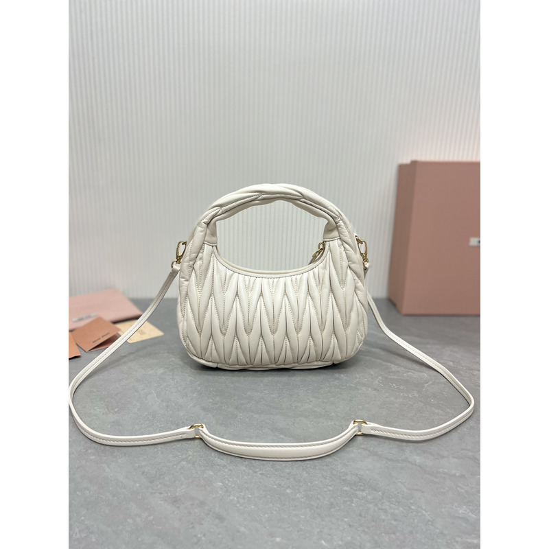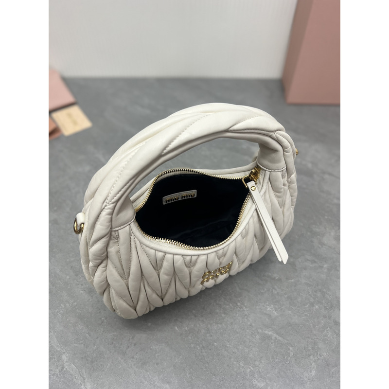 Miu Miu Wander Matelassé Nappa Leather Hobo Mini Bag In White