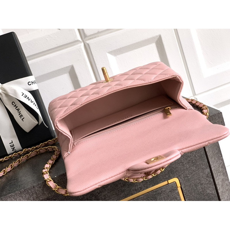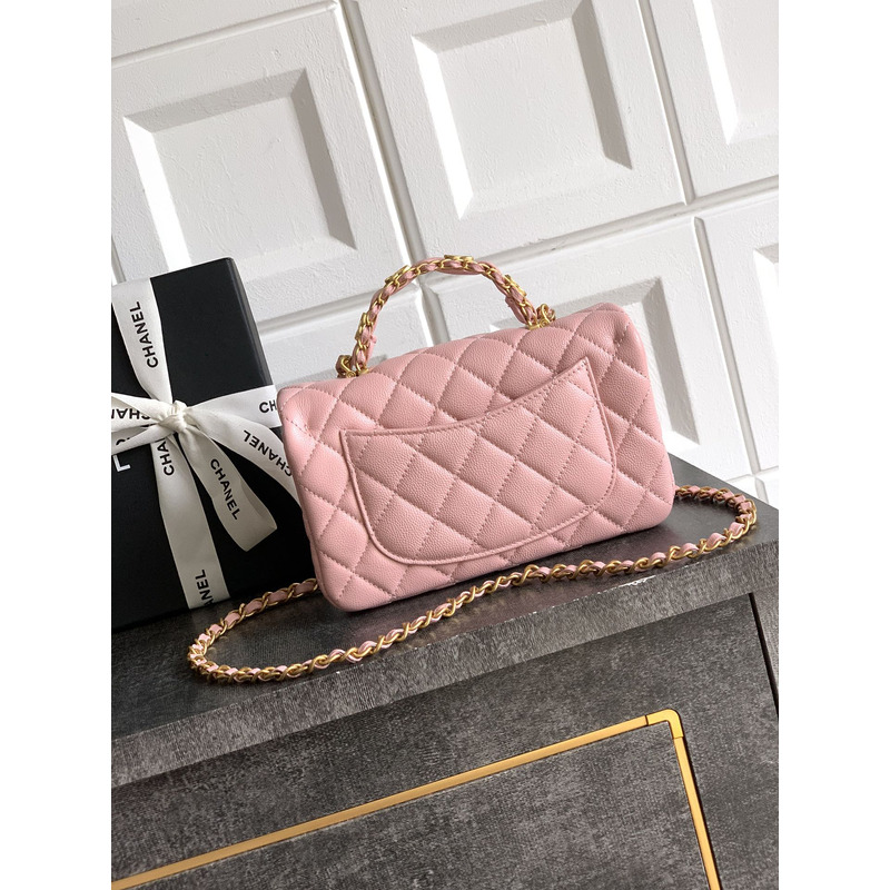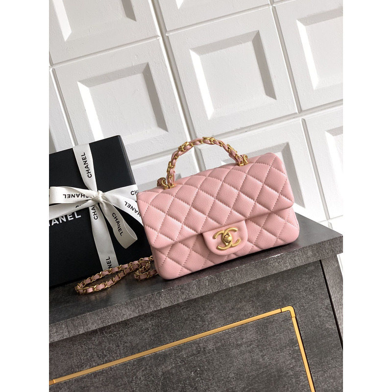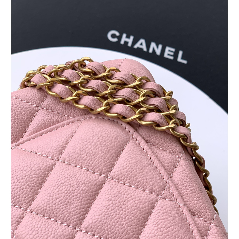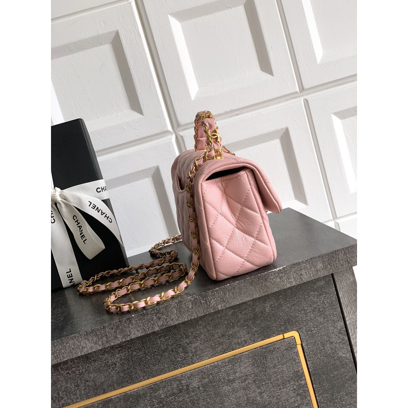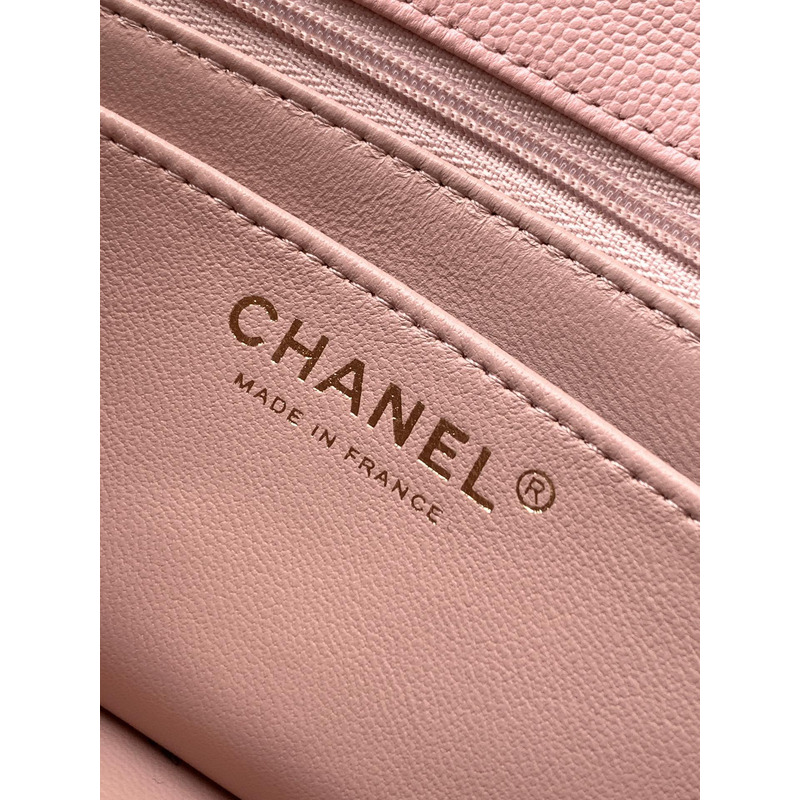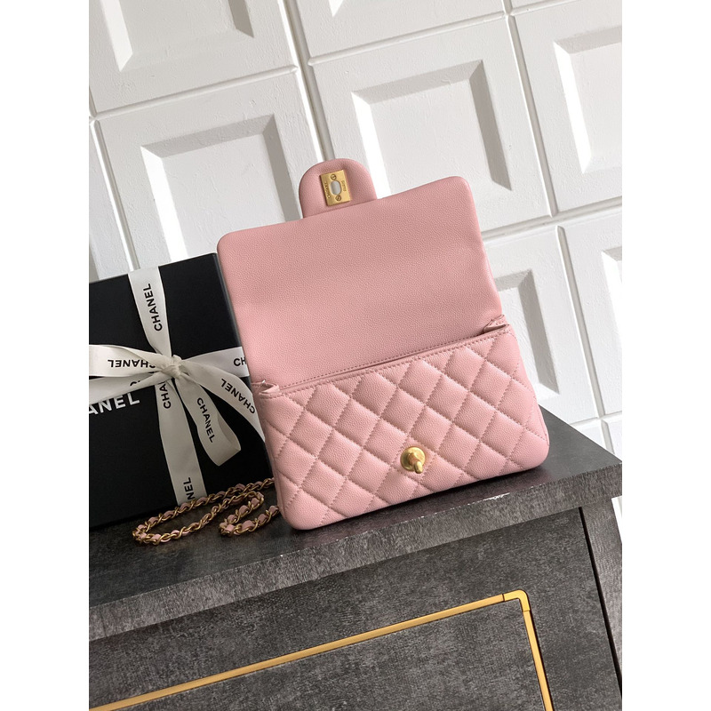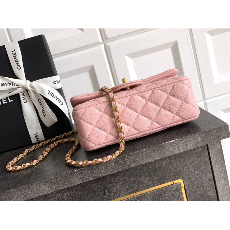Quilted Small Flap Bag Grained Calfskin & Gold-Tone Metal In Light Pink