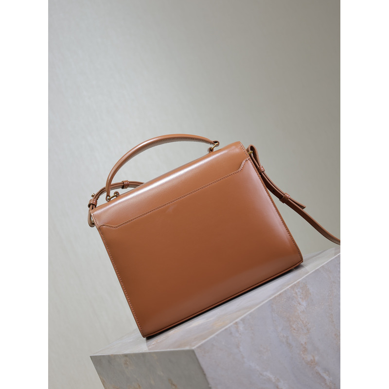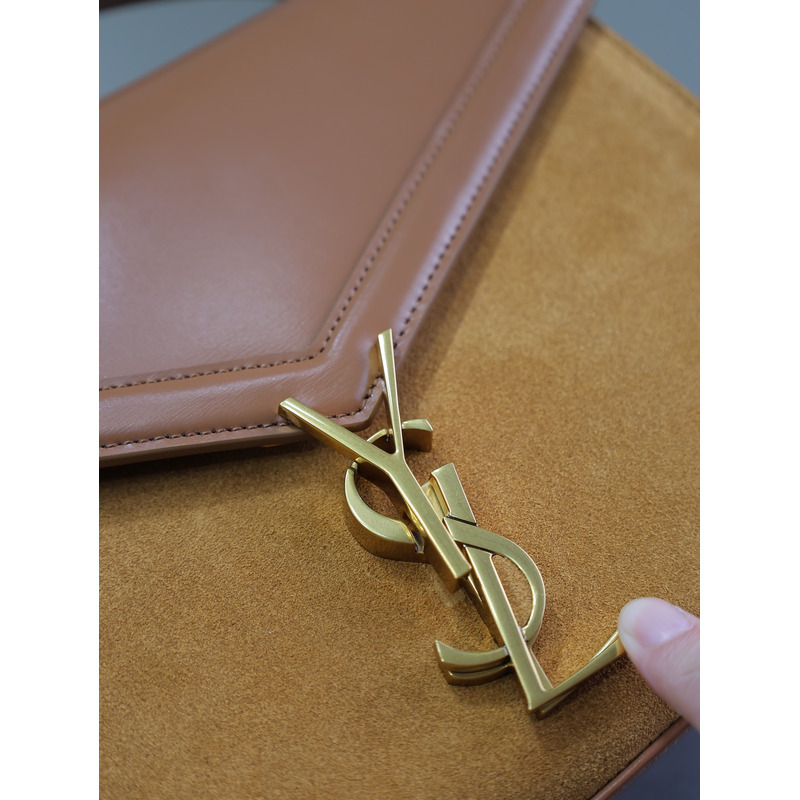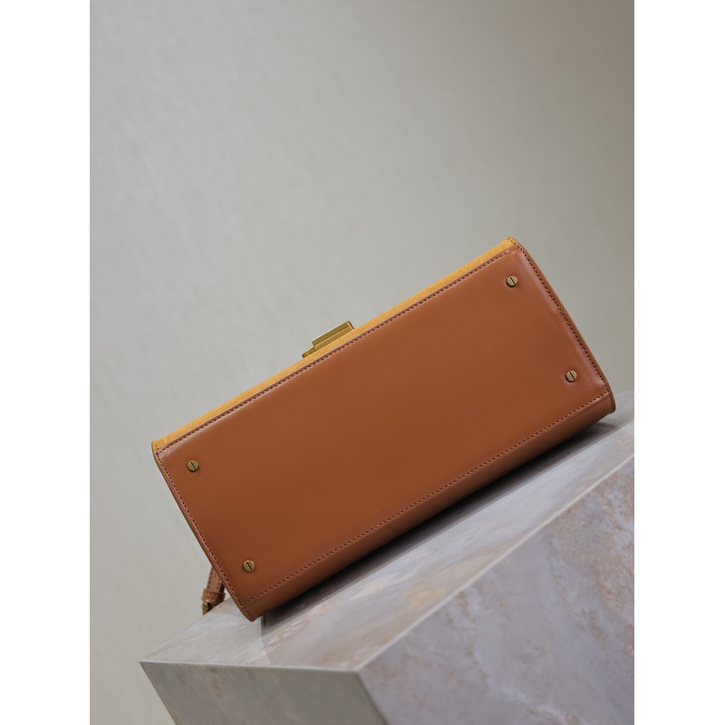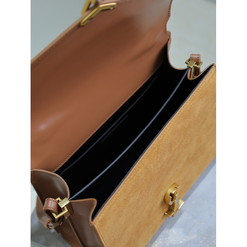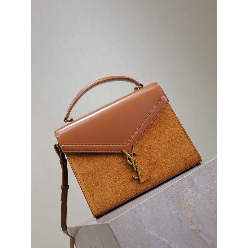 Saint Laurent Cassandra Medium Top Handle Bag In Leather & Suede In Cognac