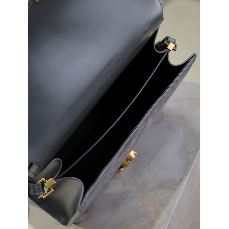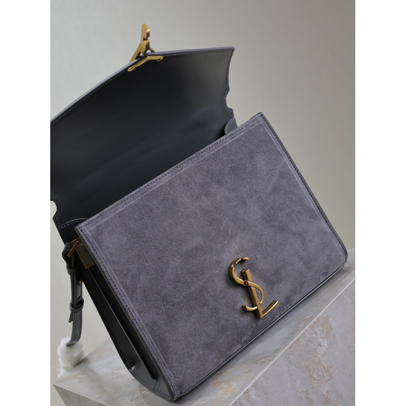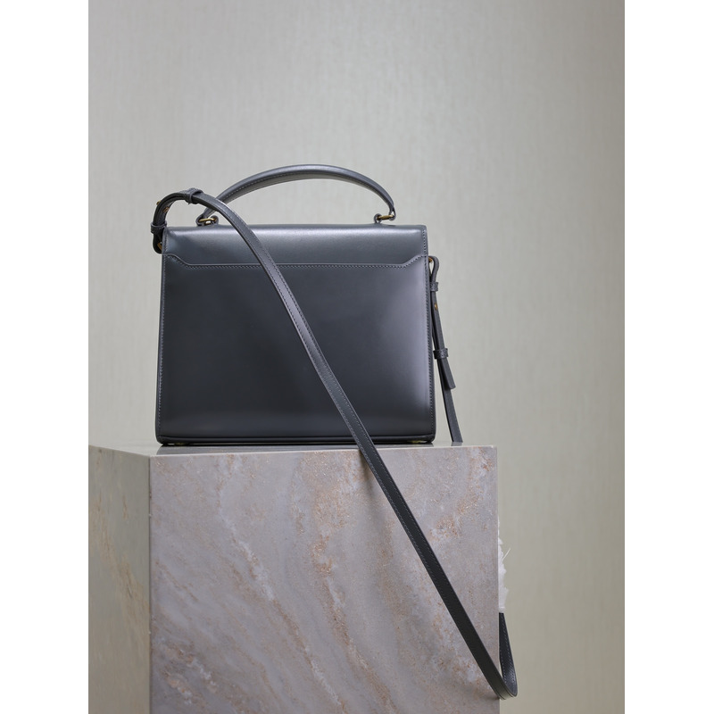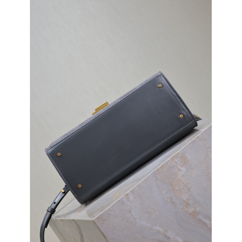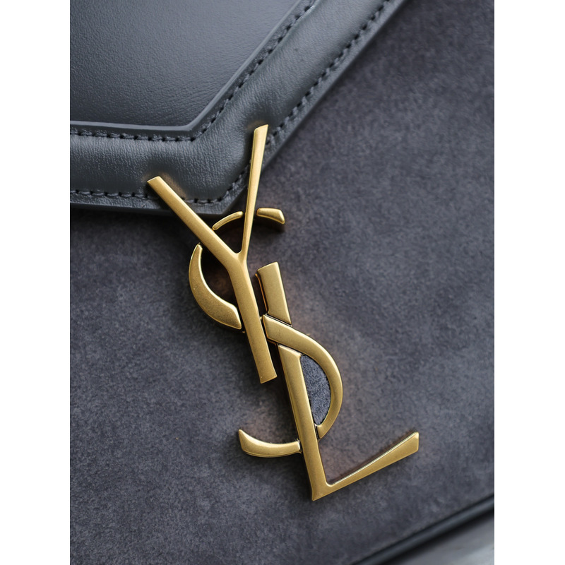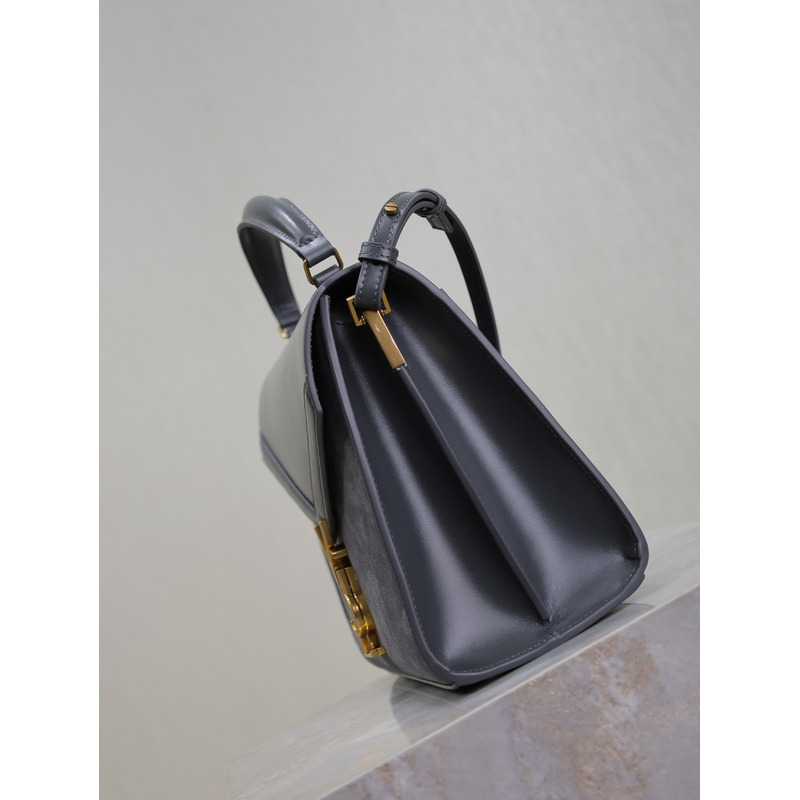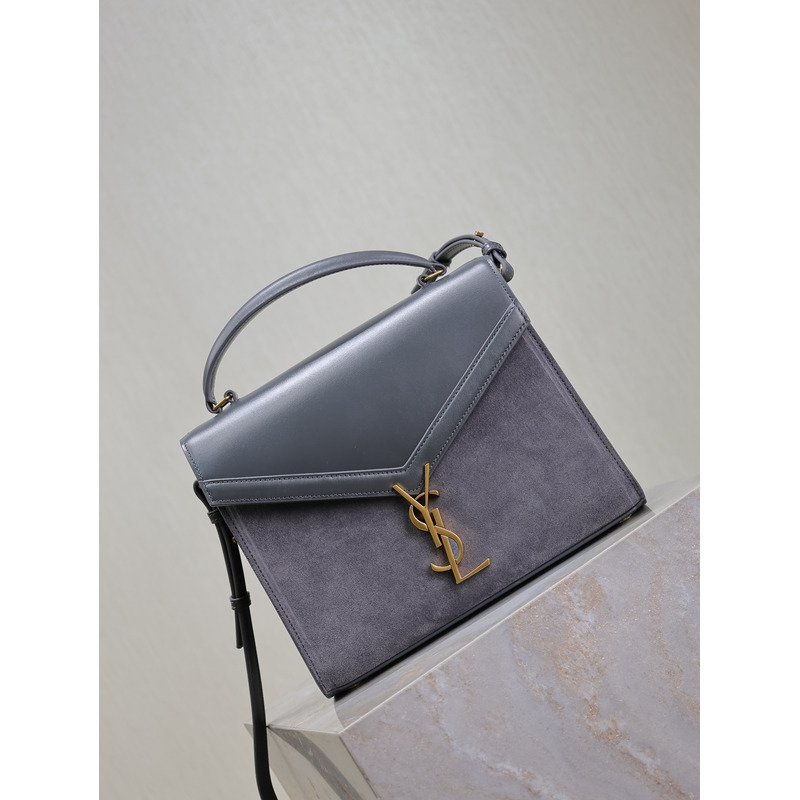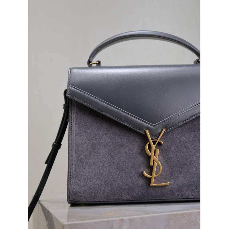 Saint Laurent Cassandra Medium Top Handle Bag In Leather & Suede In Dark Smog