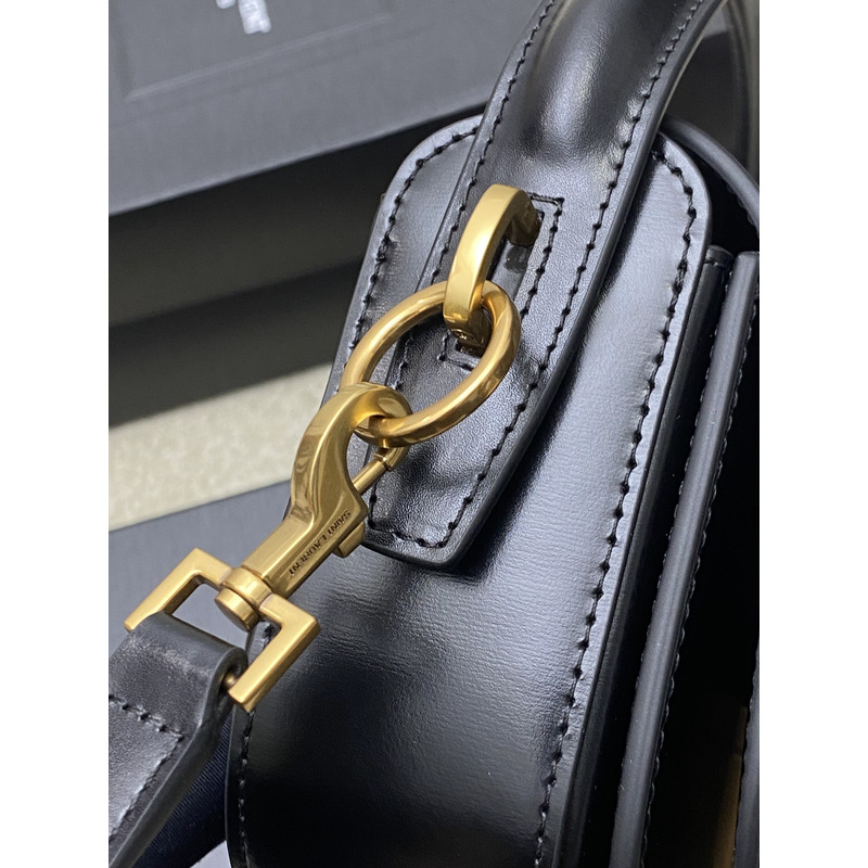 Saint Laurent Logo-Plaque Curved Shoulder Bag Black