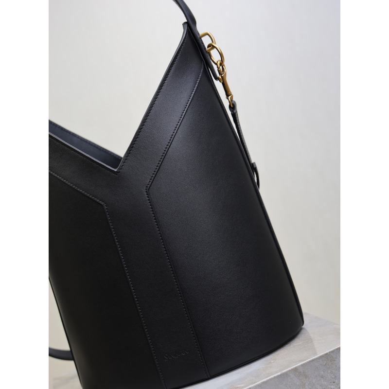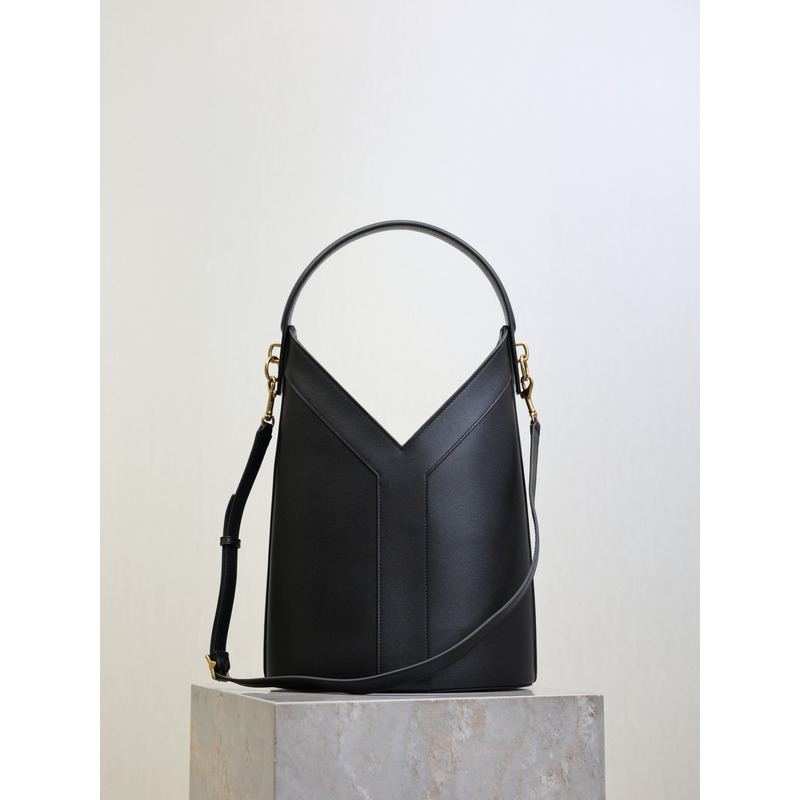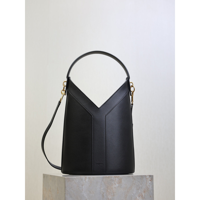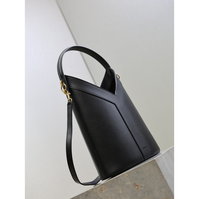 Saint Laurent Y Leather Top Handle Bucket Bag Black