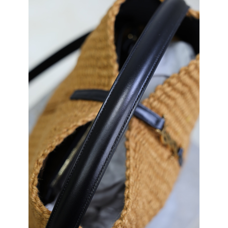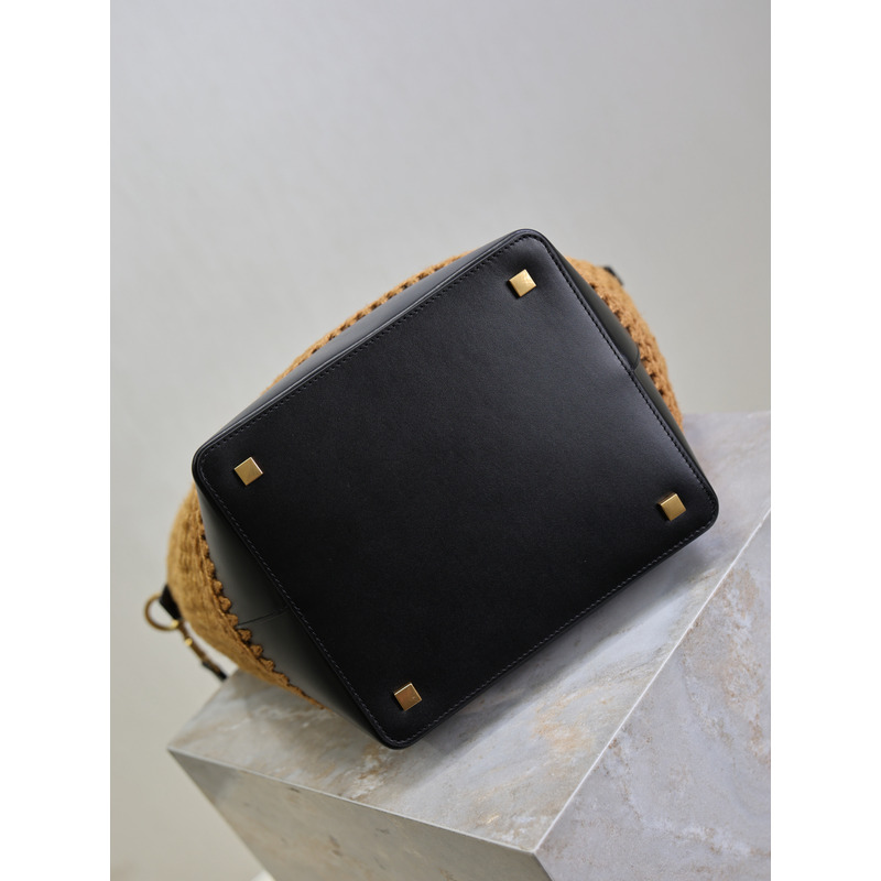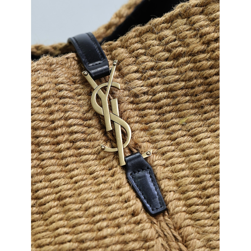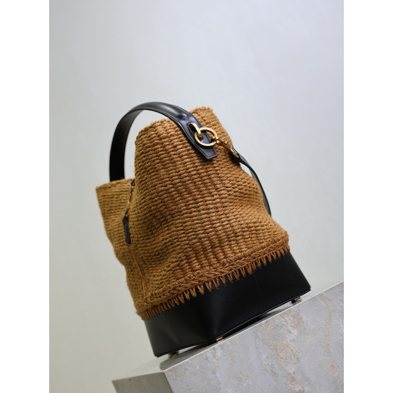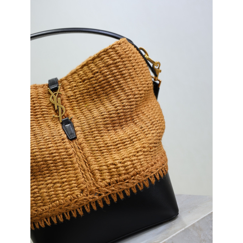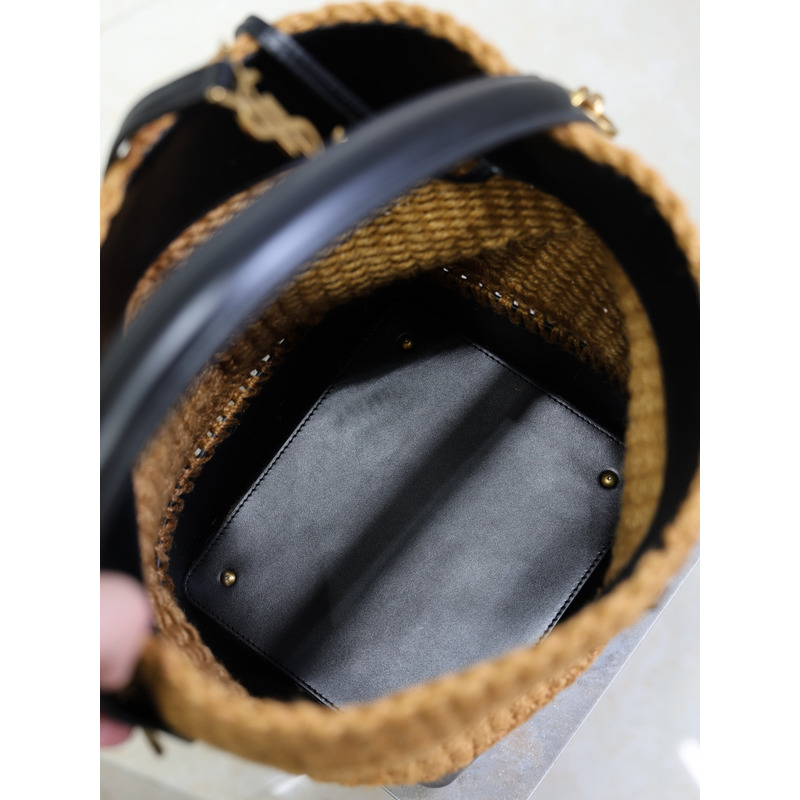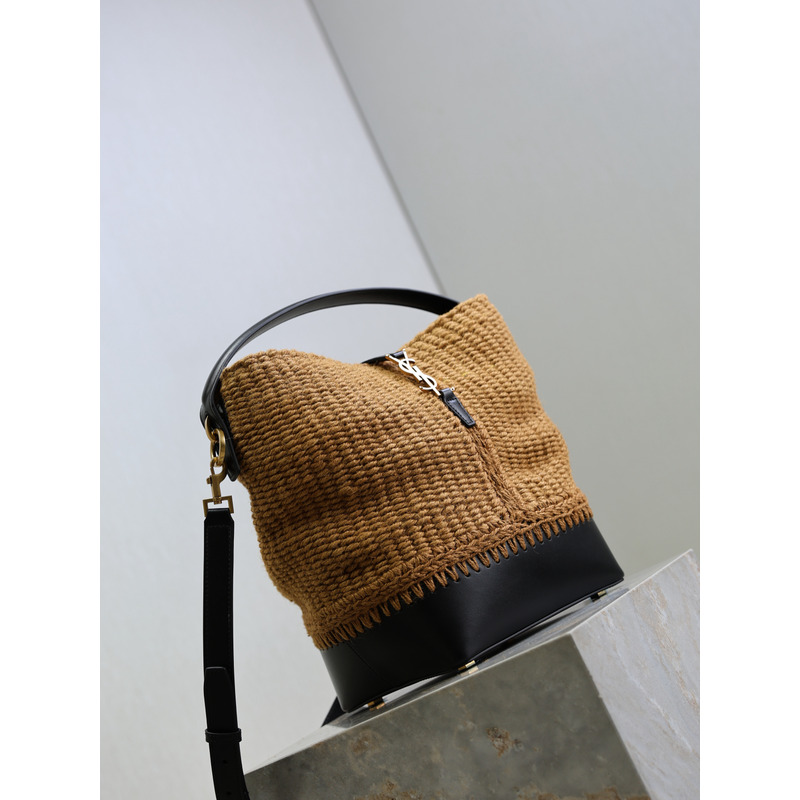 Yves Saint Laurent Le 37 Raffia And Leather Bucket Bag In Natural/Black