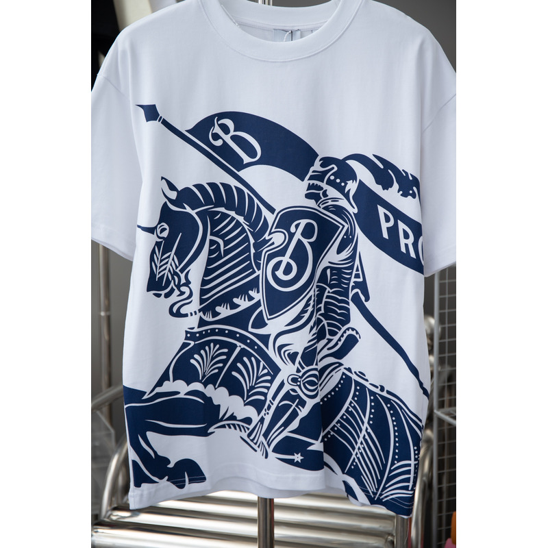 Burberry Ekd Cotton T-shirt In White And Navy Blue