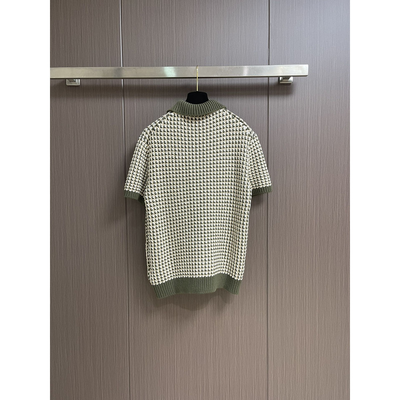 Dior Dior Oblique Polo Shirt White, Green and Brown Cotton Jacquard