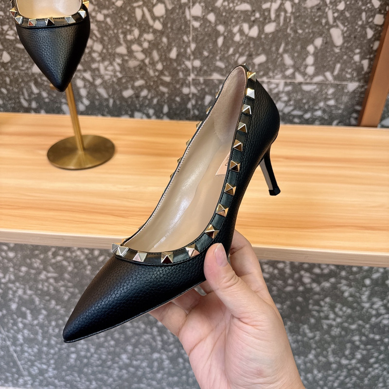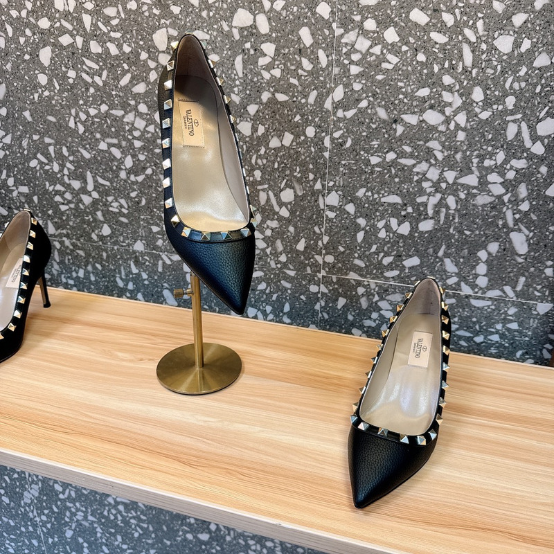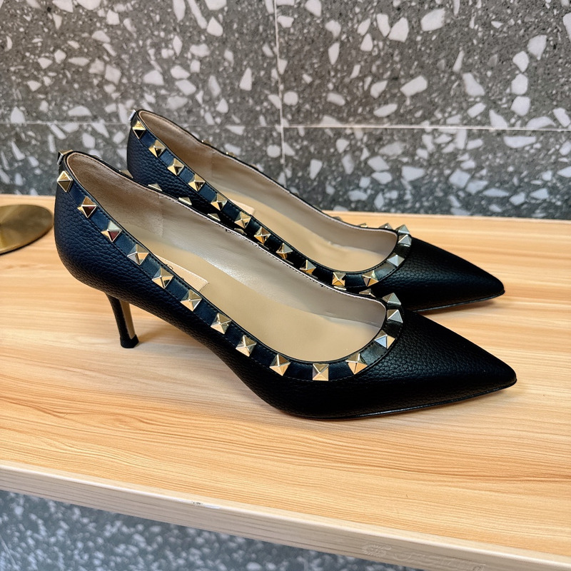 Valentino Rockstud Black Textured Leather Studded Heels