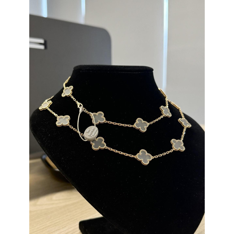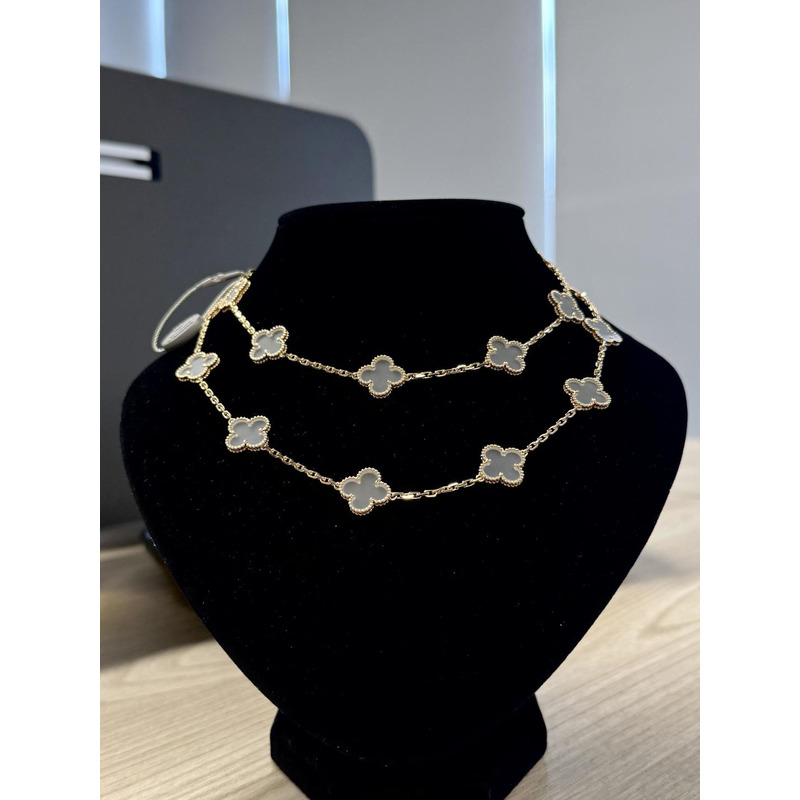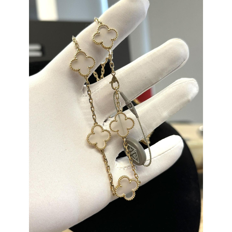 Van Cleef & ArPels Vintage Alhambra Long Necklace In Gold & White