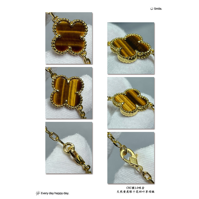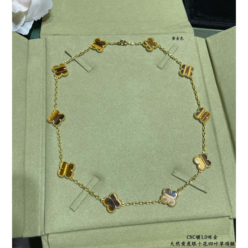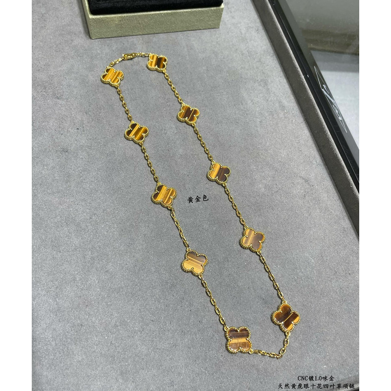 Van Cleef & ArPels Vintage Alhambra Necklace 10 Motifs With Tiger\'s Eye