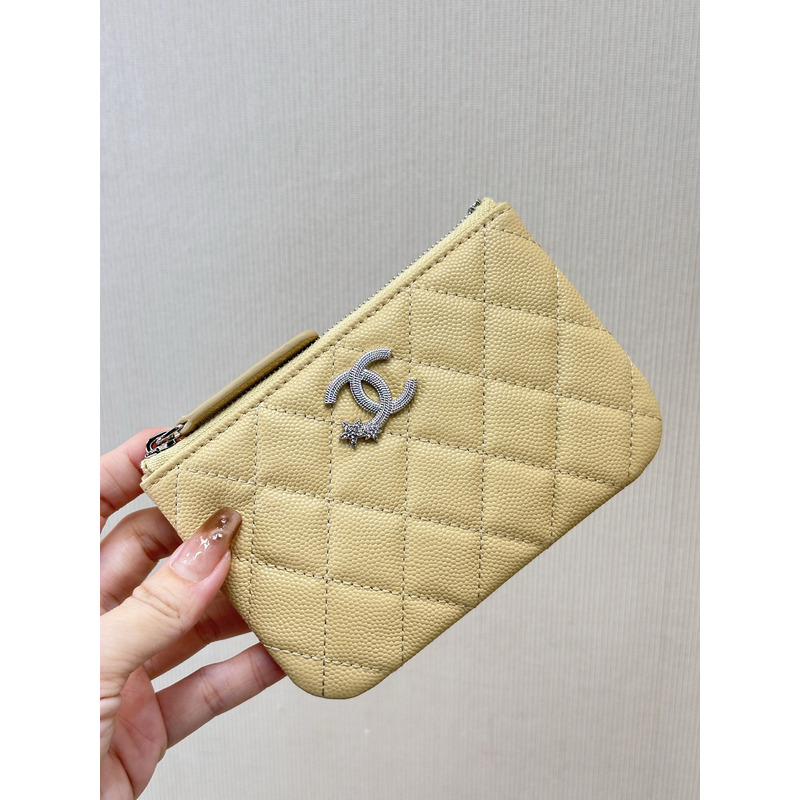 Chanel Classic Quilted Zipped Pouch In Yellow