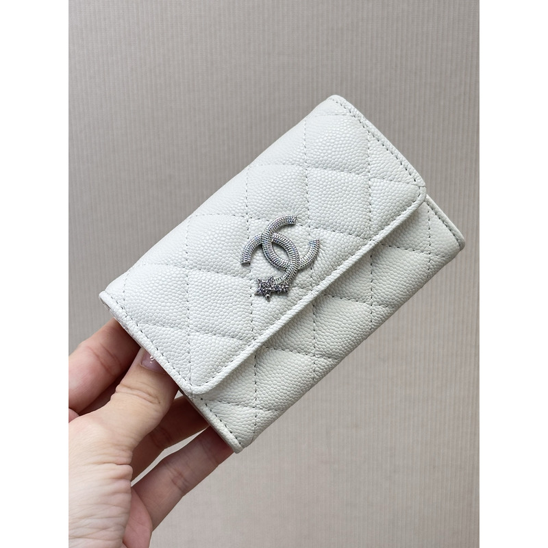Chanel Classic Quilted Flap Wallet In Light Grey