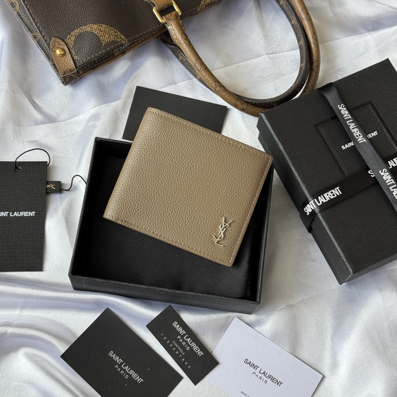 Saint Laurent Tiny Cassandre East/West Wallet In Toasted Brown Grained Leather